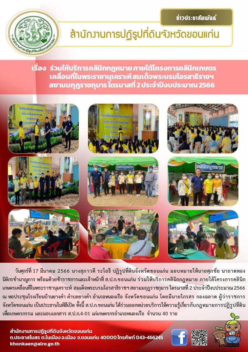 ส.ป.ก.ขอนแก่น ร่วมให้บริการคลินิกกฎหมาย ภายใต้โครงการคลินิกเกษตรเคลื่อนที่ฯ ไตรมาสที่ 2