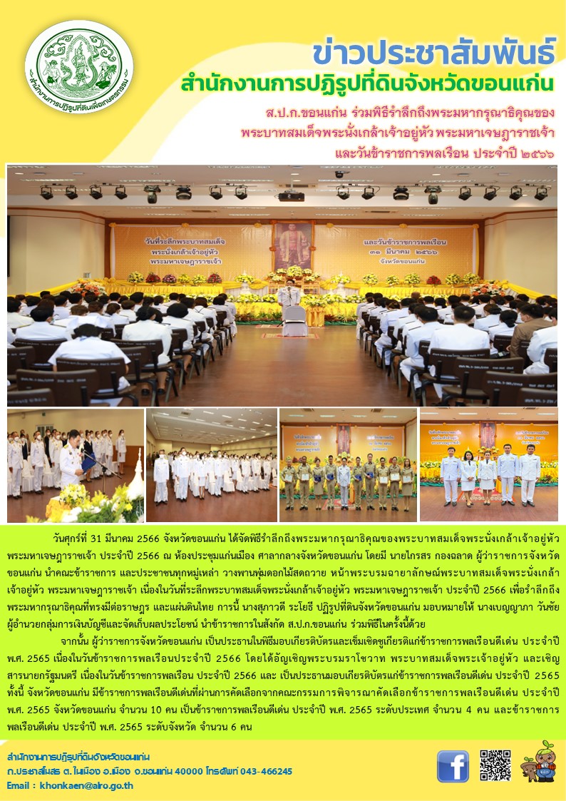 ส.ป.ก.ขอนแก่น ร่วมพิธีรำลึกถึงพระบาทสมเด็จพระนั่งเกล้าเจ้าอยู่หัวฯ และวันข้าราชการพลเรือน