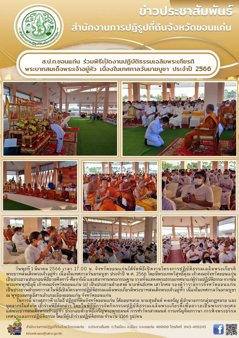 ส.ป.ก.ขอนแก่น ร่วมพิธีเปิดงานปฏิบัติธรรมเฉลิมพระเกียรติ พระบาทสมเด็จพระเจ้าอยู่หัว