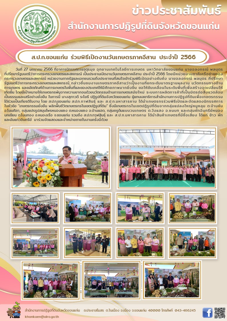 ส.ป.ก.ขอนแก่น ร่วมพิธีเปิดงานวันเกษตรภาคอีสาน ปี 2566