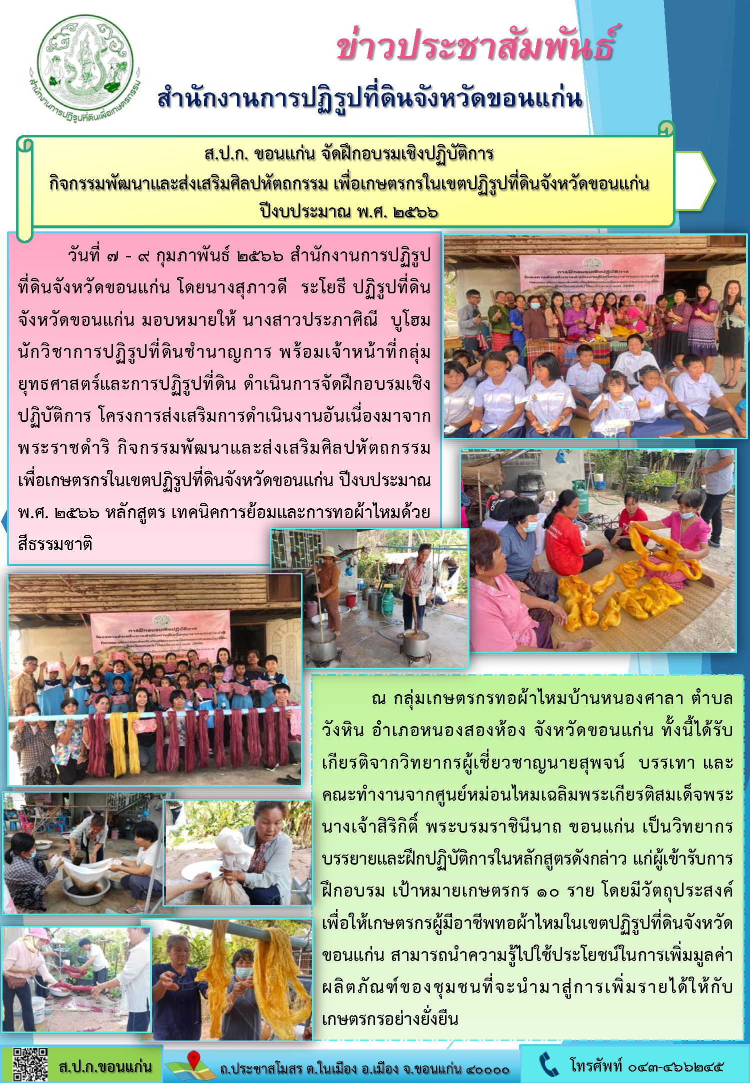 ส.ป.ก. ขอนแก่น จัดฝึกอบรมเชิงปฏิบัติการกิจกรรมพัฒนาและส่งเสริมศิลปหัตถกรรม