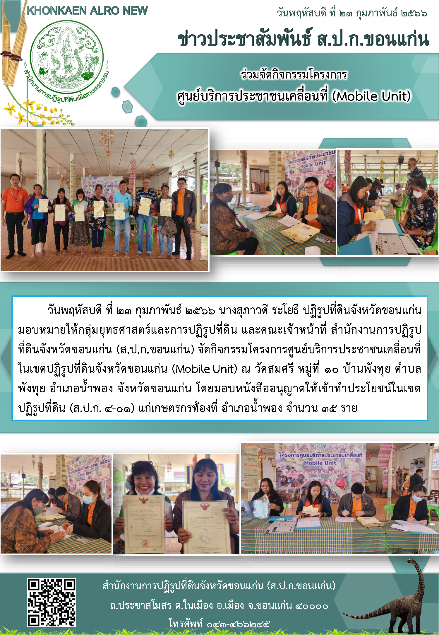 ส.ป.ก.ขอนแก่น ร่วมจัดกิจกรรมโครงการ ศูนย์บริการประชาชนเคลื่อนที่ (Mobile Unit)