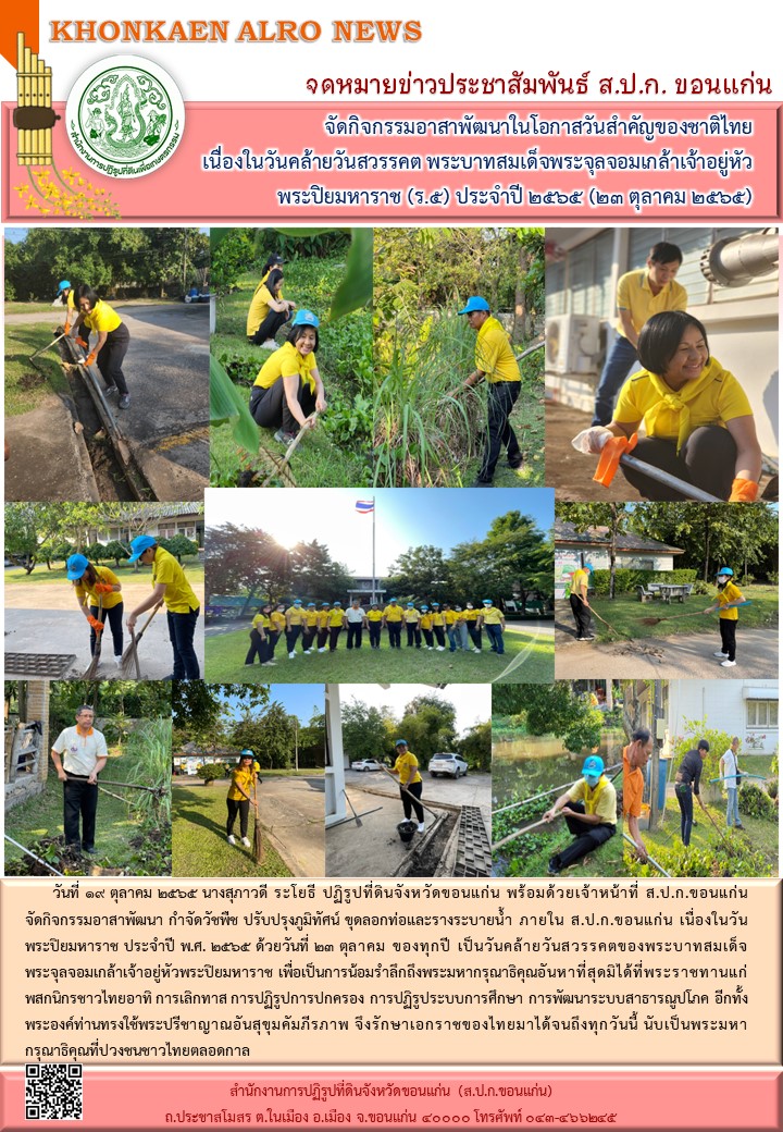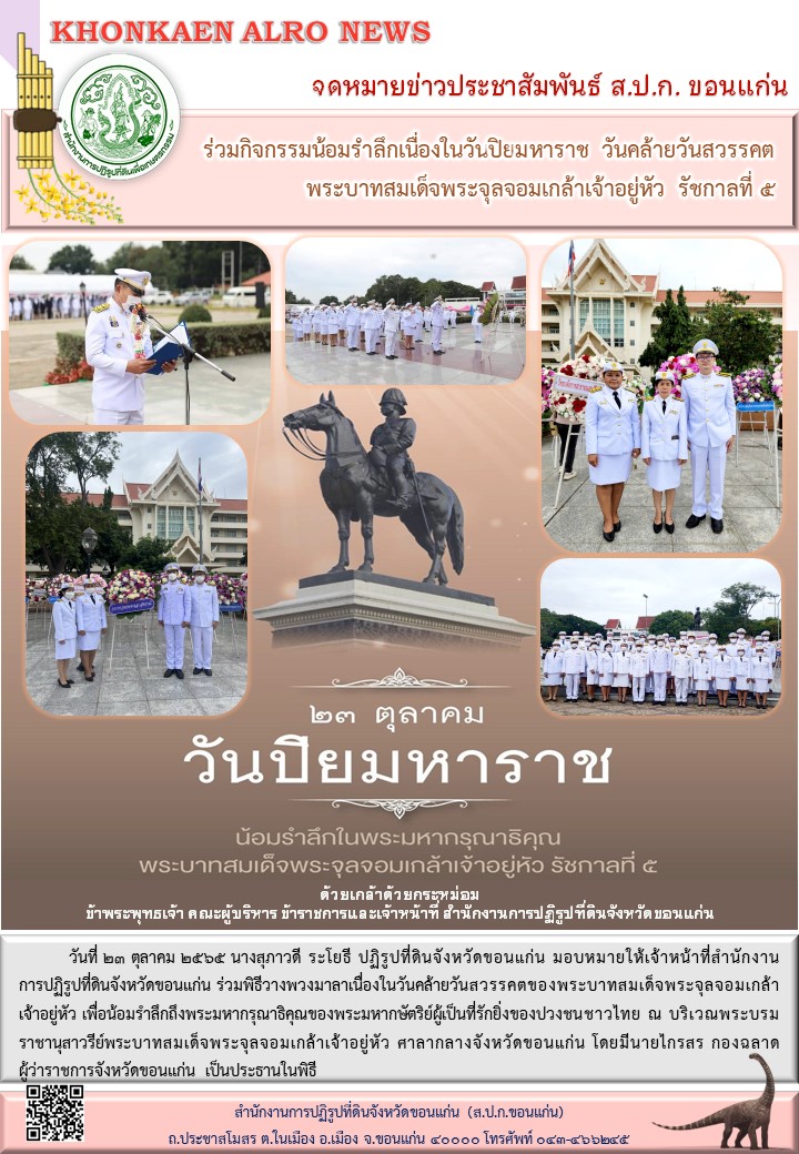 ส.ป.ก.ขอนแก่น ร่วมพิธีวางพวงมาลา เนื่องในวันคล้ายสวรรคตของพระบาทสมเด็จพระจุลจอมเกล้าเจ้าอยู่หัว