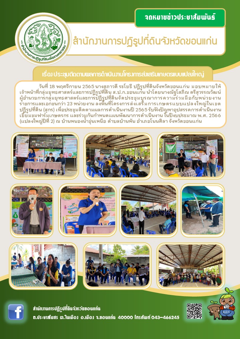 ส.ป.ก.ขอนแก่น ประชุมติดตามผลการดำเนินงาน โครงการส่งเสริมการเกษตรแบบแปลงใหญ่ในเขตปฏิรูปที่ดิน