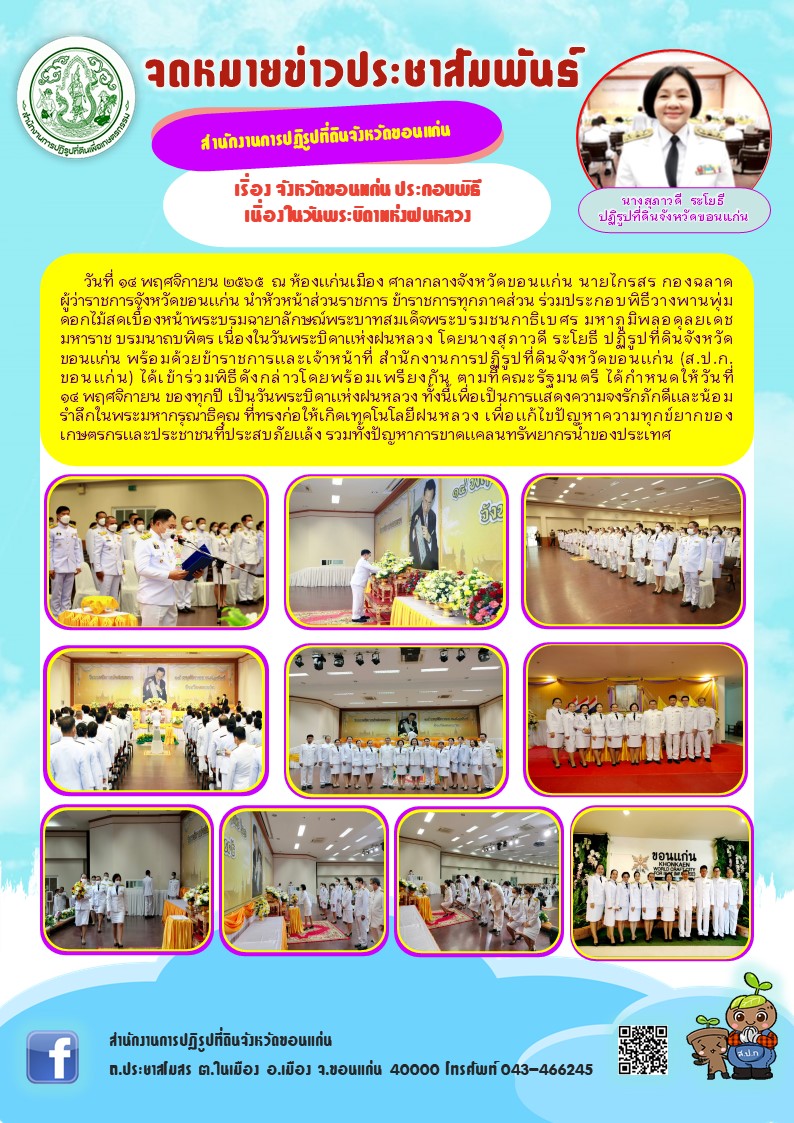 ส.ป.ก.ขอนแก่น ร่วมพิธีวางพานพุ่ม เนื่องในวันพระบิดาแห่งฝนหลวง