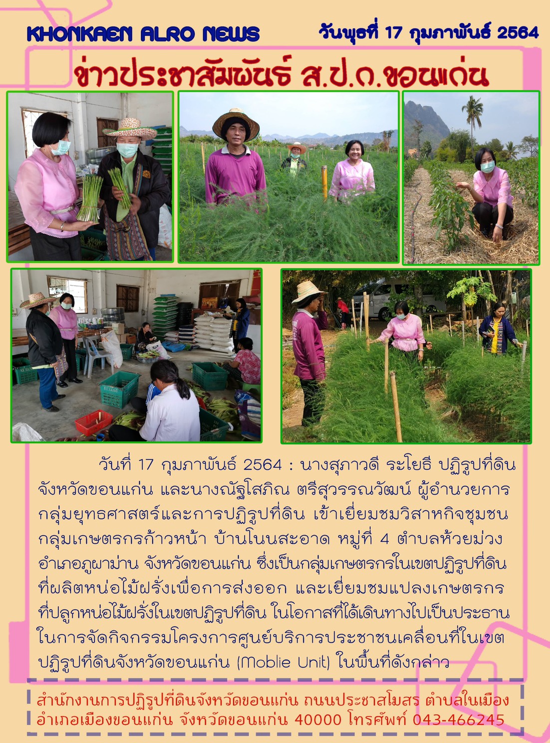 นางสุภาวดี ระโยธี ปฏิรูปที่ดินจังหวัดขอนแก่น เข้าเยี่ยมชมวิสาหกิจชุมชนกลุ่มเกษตรกรก้าวหน้า บ้านโนนสะอาด ตำบลห้วยม่วง อำเภอภูผาม่าน จังหวัดขอนแก่น