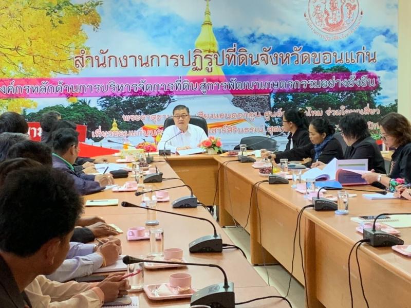 วันพฤหัสบดีที่ 24 มกราคม 2562 นายวิณะโรจน์ ทรัพย์ส่งสุข เลขาธิการสำนักงานการปฏิรูปที่ดินเพื่อเกษตรกรรม ตรวจติดตามงานการปฏิบัติงานของสำนักงานการปฏิรูปที่ดินจังหวัดขอนแก่น ประจำปีงบประมาณ 2562 ณ สำนักงานการปฏิรูปที่ดินจังหวัดขอนแก่น