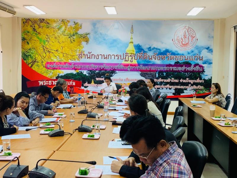 วันศุกร์ที่ 1 มีนาคม 2562 นางสาวประนอม ศรทิพย์ ปฏิรูปที่ดินจังหวัดขอนแก่น จัดประชุมสำนักงาน ประจำเดือนมีนาคม โดยมีข้าราชการ พนักงานราชการ เจ้าหน้าที่ ของสำนักงานการปฏิรูปที่ดินจังหวัดขอนแก่น (ส.ป.ก.ขอนแก่น) เข้าร่วมประชุมเพื่อปฏิบัติภารกิจและติดตามผลการดำเนินงาน ให้สามารถบรรลุวัตถุประสงค์ภายใต้กรอบภารกิจของ ส.ป.ก. ได้ตามกำหนด และเพื่อให้เกิดความร่วมมือในองค์กร หน่วยงานต่างๆ และประชาชน