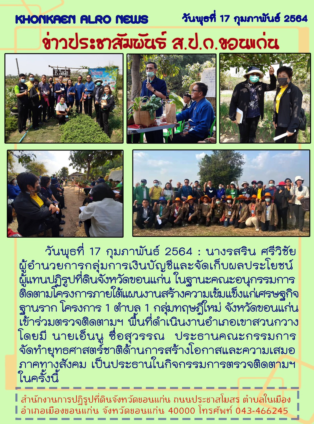 ส.ป.ก.ขอนแก่น ติดตามโครงการภายใต้แผนงานสร้างความเข้มแข็งแก่เศรษฐกิจฐานราก โครงการ 1 ตำบล 1 ทฤษฎีใหม่ จังหวัดขอนแก่น ณ อำเภอเขาสวนกวาง จังหวัดขอนแก่น