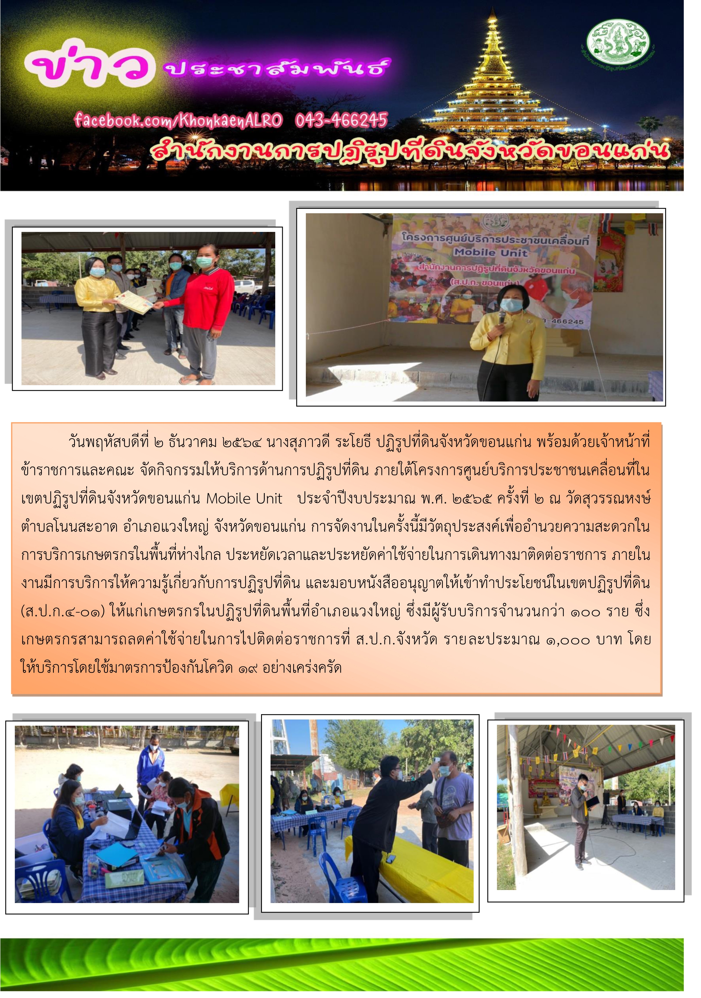 โครงการศูนย์บริการประชาชนเคลื่อนที่ในเขตปฏิรูปที่ดินจังหวัดขอนแก่น Mobile Unit ครั้งที่ 2 อำเภอแวงใหญ่ ปี 2565