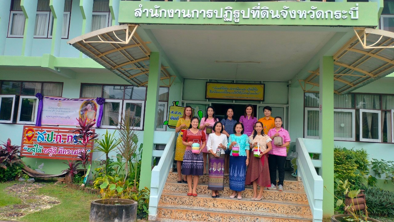 ปฏิรูปที่ดินจังหวัดกระบี่ พร้อมด้วยเจ้าหน้าที่สำนักงานการปฏิรูปที่ดินจังหวัดกระบี่ (ส.ป.ก.กระบี่) ร่วมกันจัดกิจกรรมส่งเสริมวัฒนธรรมองค์การภายในหน่วยงานในหัวข้อ “กิจกรรมสร้างความสัมพันธ์” ของ ส.ป.ก.กระบี่ โดยมีการรณรงค์แต่งกายด้วยผ้าไทยทุกวันอังคาร และหิ้วปิ่นโตรับประทานอาหารร่วมกัน ณ ส.ป.ก.กระบี่ เพื่อให้บุคลากรร่วมกันอนุรักษ์ประเพณีและวัฒนธรรมไทย รวมถึงดำเนินชีวิตด้วยความพอเพียงตามหลักปรัชญาเศรษฐกิจพอเพียง