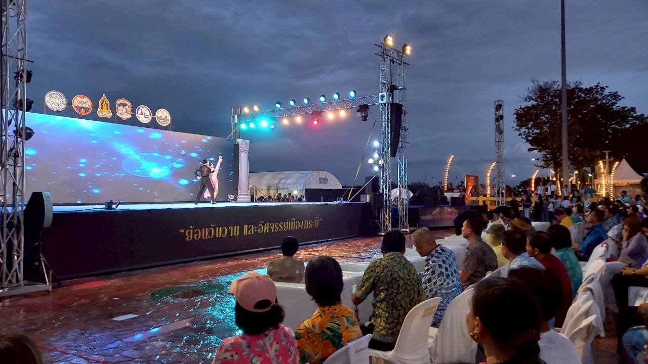 บรรยากาศภายในงาน มีประชาชนมาร่วมชมการแสดงละครเพลง "คืนอัศจรรย์ พิพิธภัณฑ์แห่งวันวาน" Krabi Fantasy The Musical กันอย่างเนืองแน่น ท่ามกลางสายฝนที่ตกโปรยปรายเป็นระยะ ทั้งนี้ ละครเพลง "คืนอัศจรรย์ พิพิธภัณฑ์แห่งวันวาน" Krabi Fantasy The Musical เปิดม่านการแสดงให้รับชมกันระหว่างวันที่ 29-31 สิงหาคม 2568 ตั้งแต่เวลา 19.00 เป็นต้นไป ณ ลานประติมากรรมปูดำ ริมเขื่อนหน้าเมืองกระบี่