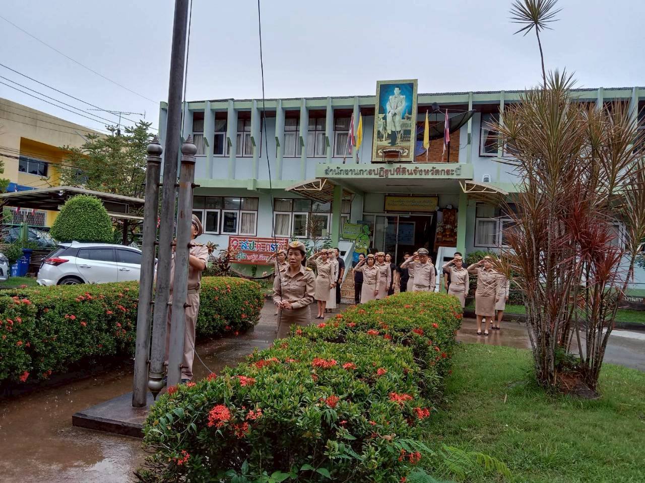 วันที่ 3 พฤศจิกายน 2568 เวลา 08.00 น. ข้าราชการและเจ้าหน้าที่ ส.ป.ก.กระบี่ ร่วมกันดำเนินกิจกรรมเคารพธงชาติ ร้องเพลงชาติไทย และเพลงสรรเสริญพระบารมี เพื่อแสดงความจงรักภักดีต่อชาติ ศาสนา พระมหากษัตริย์ และร่วมยืนสงบนิ่งถวายความอาลัย น้อมรำลึกในพระมหากรุณาธิคุณ สมเด็จพระนางเจ้าสิริกิติ์ พระบรมราชินีนาถ พระบรมราชชนนีพันปีหลวง