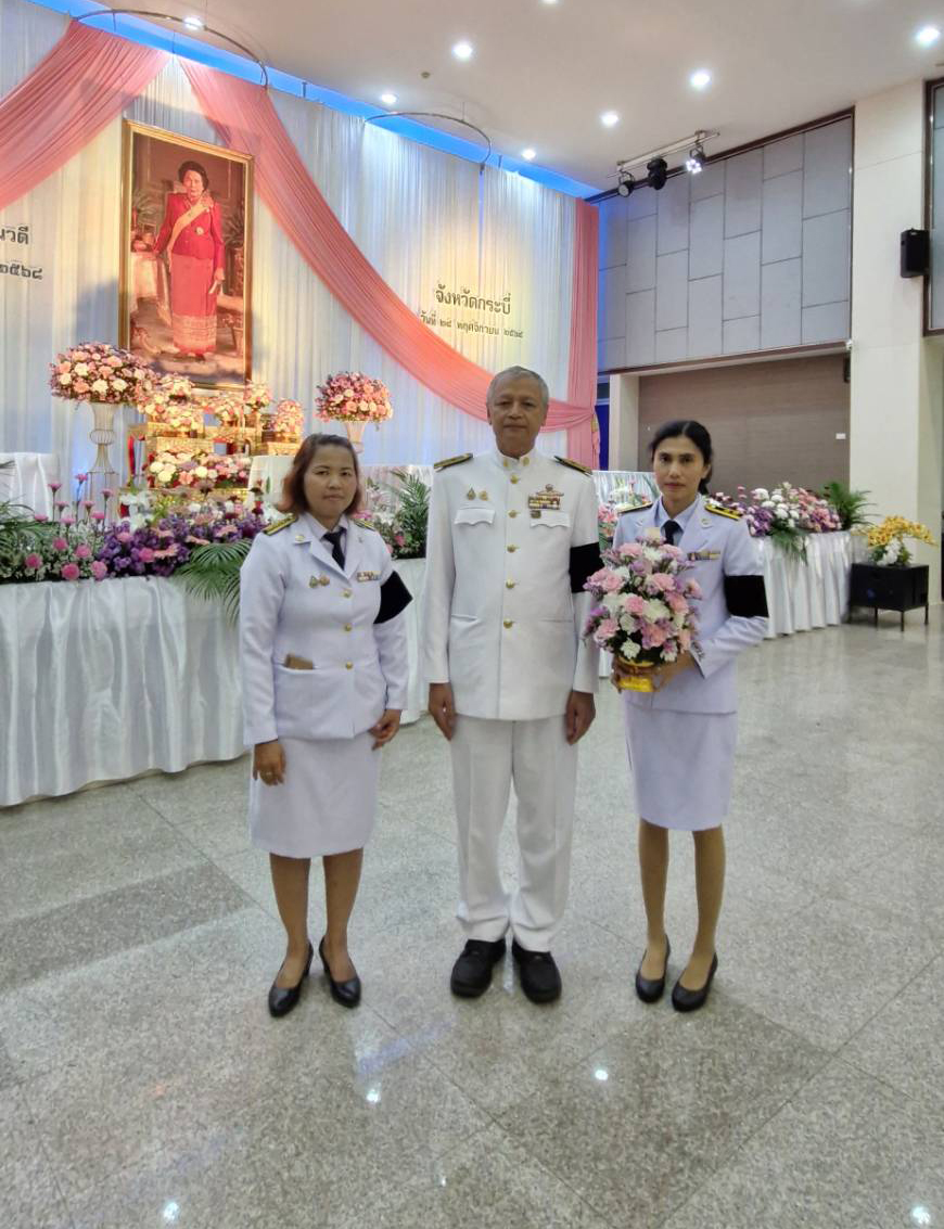 วันที่ 24 พฤศจิกายน 2568 เวลา 08.30 น. นายวินัย จะระนิล ปฏิรูปที่ดินจังหวัดกระบี่ พร้อมด้วยข้าราชการและเจ้าหน้าที่ในสังกัด ส.ป.ก.กระบี่ ร่วมพิธีวางพานพุ่มดอกไม้ถวายราชสักการะ สมเด็จพระเจ้าบรมวงศ์เธอ เจ้าฟ้าเพชรรัตนราชสุดา สิริโสภาพัณณวดี กรมพระนครปฐมบรมขัตติยานี มหาธีรราชธิดา เนื่องในโอกาสคล้ายวันประสูติครบ 100 ปี 24 พฤศจิกายน โดยมีนายอังกูร ศีลาเทวากูล ผู้ว่าราชการจังหวัดกระบี่ เป็นประธานประกอบพิธี พร้อมด้วยหัวหน้าส่วนราชการ ข้าราชการพลเรือน ตุลาการ อัยการ ทหาร ตำรวจ พนักงานรัฐวิสาหกิจ ผู้บริหารสถานศึกษา ผู้บริหารองค์กรปกครองส่วนท้องถิ่น เหล่ากาชาดจังหวัด ภาคเอกชน สมาคม มูลนิธิ และประชาชนชาวกระบี่เข้าร่วมในพิธีโดยพร้อมเพรียง ณ ห้องประชุมช้างเผือก องค์การบริหารส่วนจังหวัดกระบี่ อำเภอเมืองกระบี่ จังหวัดกระบี่