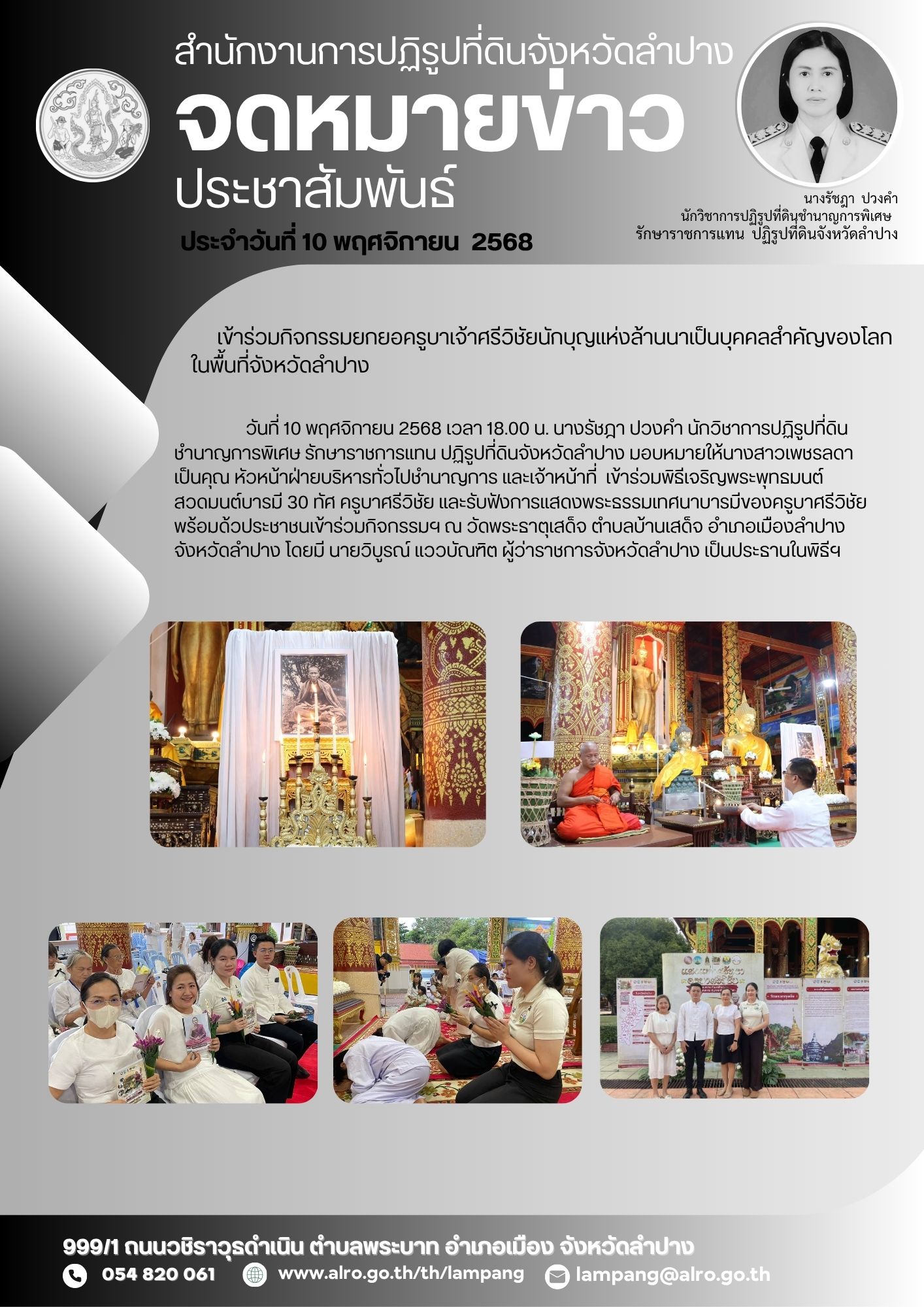 เข้าร่วมกิจกรรมยกยอครูบาเจ้าศรีวิชัยนักบุญแห่งล้านนาเป็นบุคคลสำคัญของโลก ในพื้นที่จังหวัดลำปาง