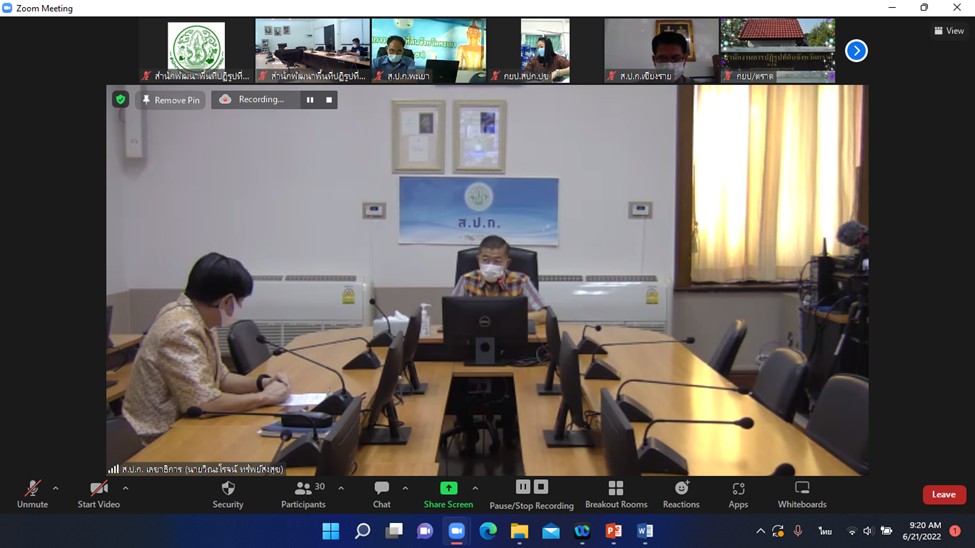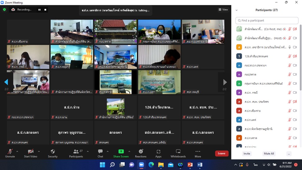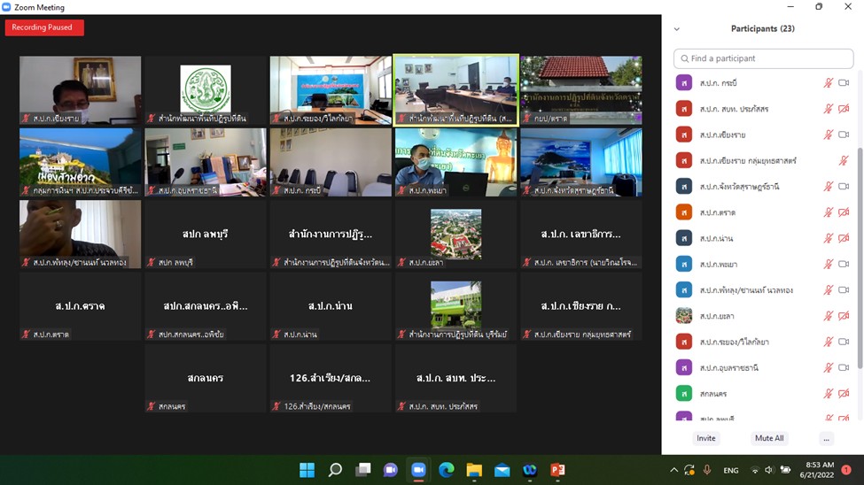 วันอังคารที่ 21 มิถุนายน 2565 เวลา 09.00 น. ดร.วิณะโรจน์ ทรัพย์ส่งสุข เลขาธิการ ส.ป.ก. เป็นประธานการ ประชุมชี้แจงแนวทางการดำเนินการ โครงการฝายชะลอน้ำแบบชั่วคราว สำหรับการเพิ่มประสิทธิภาพของแหล่งน้ำ ในเขตปฏิรูปที่ดิน ปีงบประมาณ 2565 โดยมี นายสมศักดิ์ การเจริญกุลวงศ์ ผู้อำนวยการสำนักพัฒนาพื้นที่ปฏิรูปที่ดิน พร้อมด้วยปฏิรูปที่ดินจังหวัด และเจ้าหน้าที่ที่เกี่ยวข้อง เข้าร่วมประชุม ณ ห้องประชุมจาริน อัตถะโยธิน ส.ป.ก. ถนนราชดำเนินนอก กรุงเทพมหานคร และผ่านสื่ออิเล็กทรอนิกส์ ZOOM Meeting