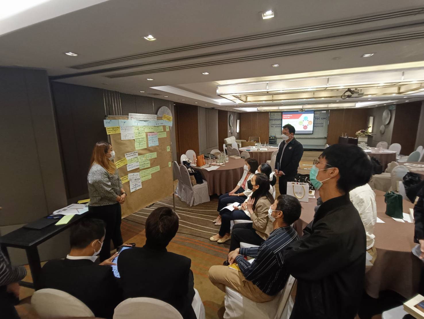 ผลการประชุมหารือ ในเบื้องต้นได้สรุปเป้าหมายการดำเนินโครงการ TGC EMC ออกเป็น 4 ผลลัพธ์ ได้แก่ 1) ด้านเทคโนโลยี สนับสนุนการพัฒนาเทคโนโลยีที่ปล่อยคาร์บอนต่ำ (Decabonisation) และสนับสนุนให้เกิดการนำไปใช้จริง 2) ด้านนโยบาย จัดทำข้อเสนอแนะสำหรับการยกระดับกรอบการกำกับดูแล นโยบาย กลไกการตลาด และแผนงานต่าง ๆ เพื่อสนับสนุนการเปลี่ยนผ่านอย่างยั่งยืนและเป็นระบบ 3) โครงการนำร่อง เพื่อนำร่องมาตรการต่าง ๆ ตามเป้าหมาย (Carbon Neutrality) ในพื้นที่นำร่องโครงการ (City Lab) และ 4) ด้านการเงิน มีการจัดตั้งกองทุน Thai Climate Initiative (ThaiCI) เพื่อเป็นกลไกทางการเงินในการส่งเสริมและสนับสนุนการดำเนินกิจกรรมต่าง ๆ เพื่อรับมือกับการเปลี่ยนแปลงสภาพอากาศในระดับภูมิภาคของประเทศไทย พร้อมกันนี้ผู้แทนจากแต่ละหน่วยงานยังได้ร่วมกันเสนอความคิดเห็น และร่วมวางแผนการดำเนินการโครงการต่อไปในอนาคต