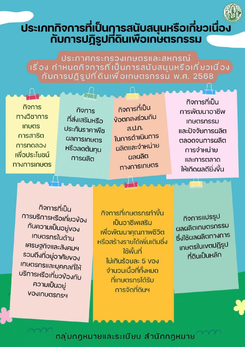 ประเภทกิจการที่เป็นการสนับสนุนหรือเกี่ยวเนื่องกับการปฏิรูปที่ดินเพื่อเกษตรกรรม