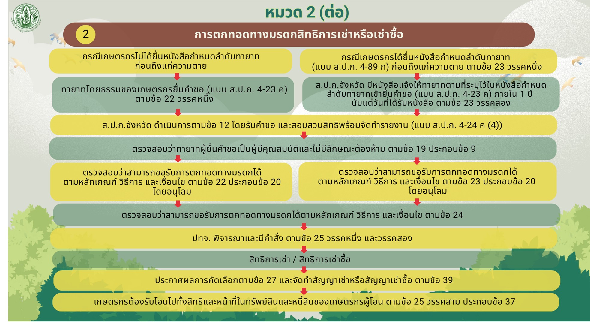 หมวด 2 การโอนสิทธิการเช่าหรือเช่าซื้อให้แก่คู่สมรส บุตร เครือญาติ หรือเกษตรกรอื่น