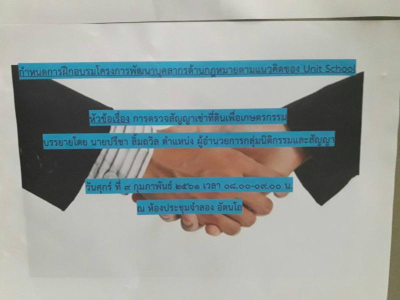 Unit School ครั้งที่ 2 เรื่อง การตรวจสัญญาเช่าที่ดินเพื่อเกษตรกรรม