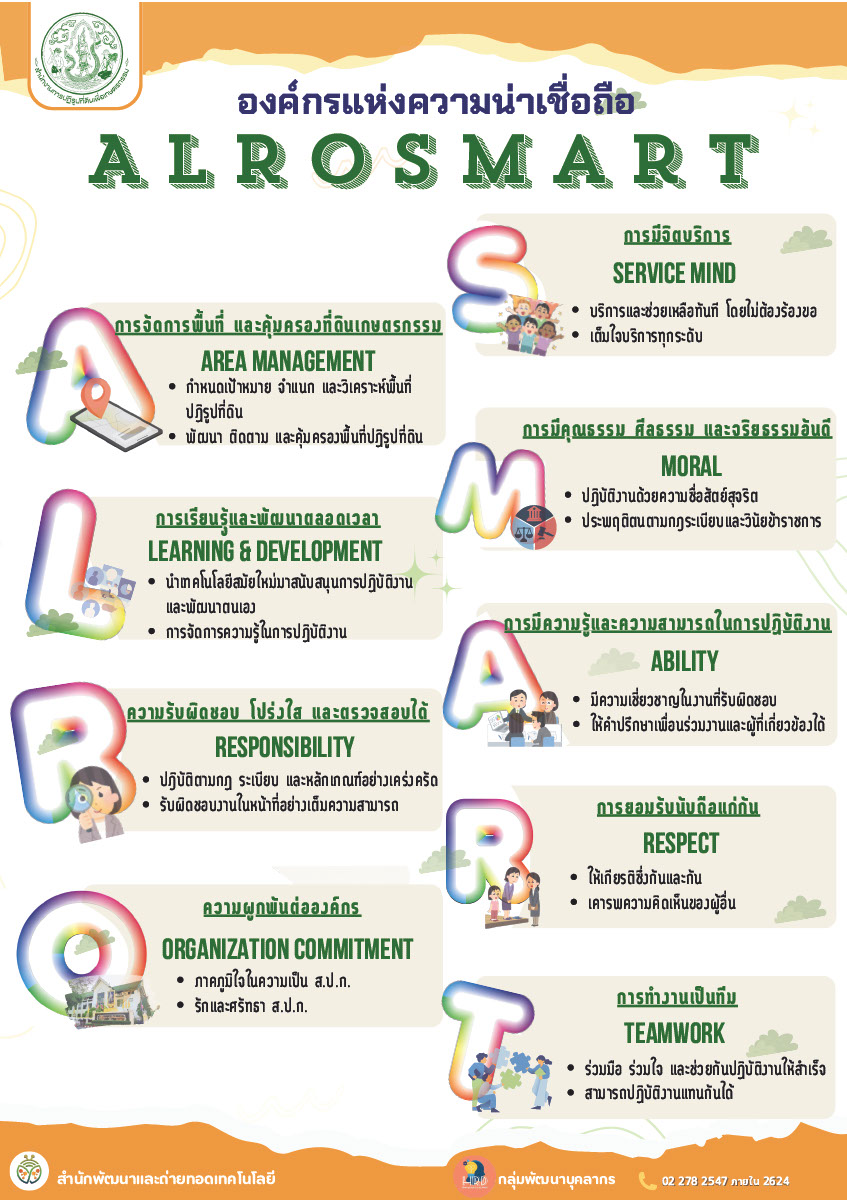 วัฒนธรรมองค์การของ ส.ป.ก. ALRO SMART และแนวทางประพฤติทางจริยธรรมและการปฏิบัติตนของเจ้าหน้าที่
