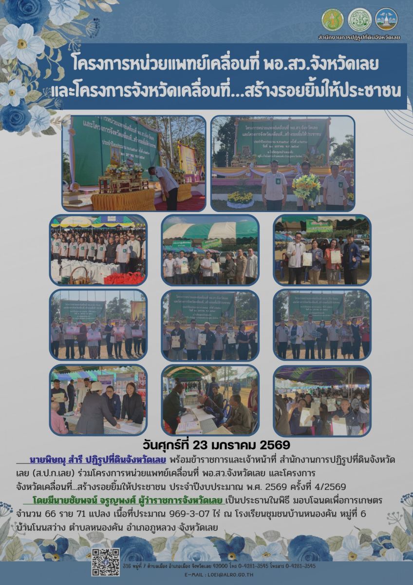 หน่วยแพทย์เคลื่อนที่ พอ.สว.จังหวัดเลย และโครงการจังหวัดเคลื่อนที่...สร้างรอยยิ้มให้ประชาชน ประจำปีงบประมาณ พ.ศ. 2569 ครั้งที่ 4/2569