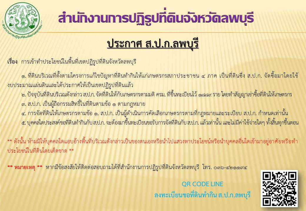 ลงทะเบียนขอที่ดินทำกิน ส.ป.ก.ลพบุรี ด้วยระบบ QR CODE LINE