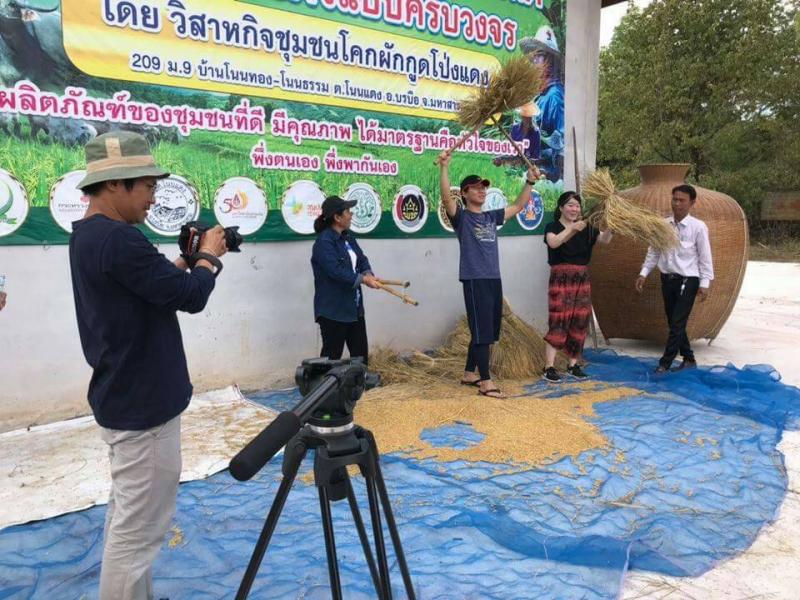 สถานีโทรทัศน์ไทยพีบีเอส ได้เข้าถ่ายทำรายการ อยู่ดีมีแฮง เรื่องข้าวอินทรีย์ การนวดข้าวด้วยมือ และการจำหน่ายผลผลิตอินทรีย์ พร้อมทั้งทำการสัมภาษณ์คณะชาวญี่ปุ่นที่มาศึกษาดูงานในพื้นที่ ในวันที่ ๑๗ - ๑๘ พฤศจิกายน ๒๕๖๑ ณ กลุ่มเกษตรอินทรีย์โคกผักกูด - โป่งแดง ต.โนนแดง อ.บรบือ จ.มหาสารคาม โดยสำนักงานการปฏิรูปที่ดินจังหวัดมหาสารคาม ทำหน้าที่ในการให้คำแนะนำเกี่ยวกับการบริหารจัดการกลุ่มเกษตรกร