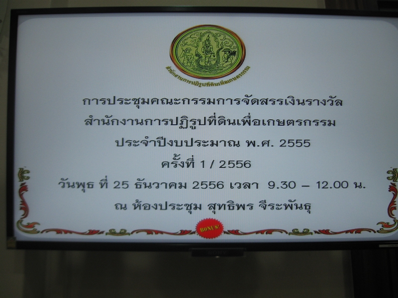 การประชุมคณะกรรมการจัดสรรเงินรางวัล ส.ป.ก. ประจำปีงบประมาณ พ.ศ.2555 ครั้งที่ 1 /2556