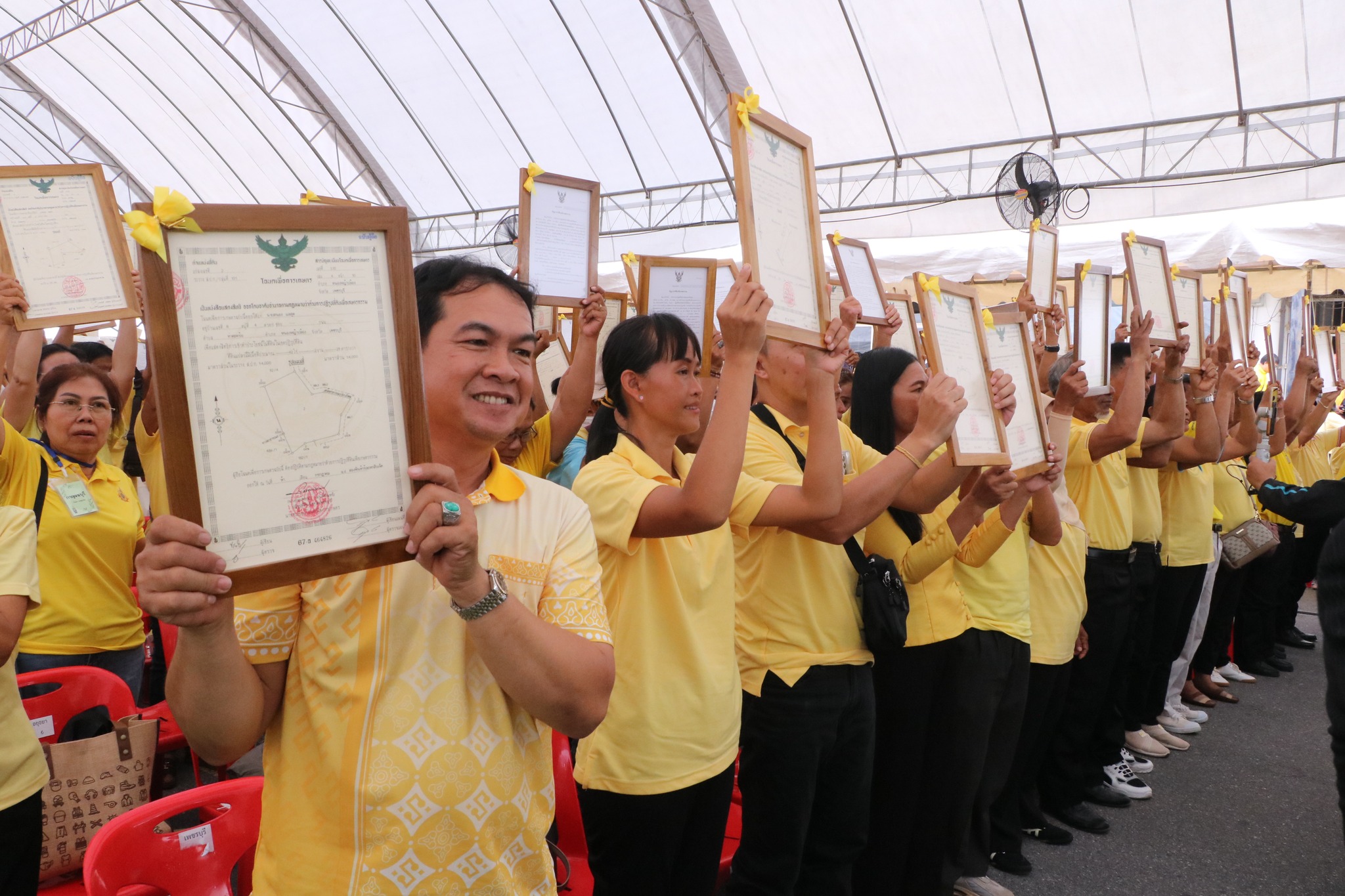 นายพนมไพร ดีใหม่ ผู้อำนวยการสำนักจัดการแผนที่และสารบบที่ดิน พร้อมด้วยข้าราชการ และบุคลากรในสังกัดสำนักจัดการแผนที่และสารบบที่ดิน ร่วมกิจกรรม ส.ป.ก. มอบโฉนดเพื่อการเกษตร 72,000 ฉบับ เฉลิมพระเกียรติพระบาทสมเด็จพระเจ้าอยู่หัว เนื่องในโอกาสพระราชพิธีมหามงคลเฉลิมพระชนมพรรษา 6 รอบ 28 กรกฎาคม 2567 วันที่ 15 กรกฎาคม 2567 ณ ศูนย์ส่งเสริมและพัฒนาอาชีพเสริมนอกภาคการเกษตร ตำบลช้างใหญ่ อำเภอบางไทร จังหวัดพระนครศรีอยุธยา
