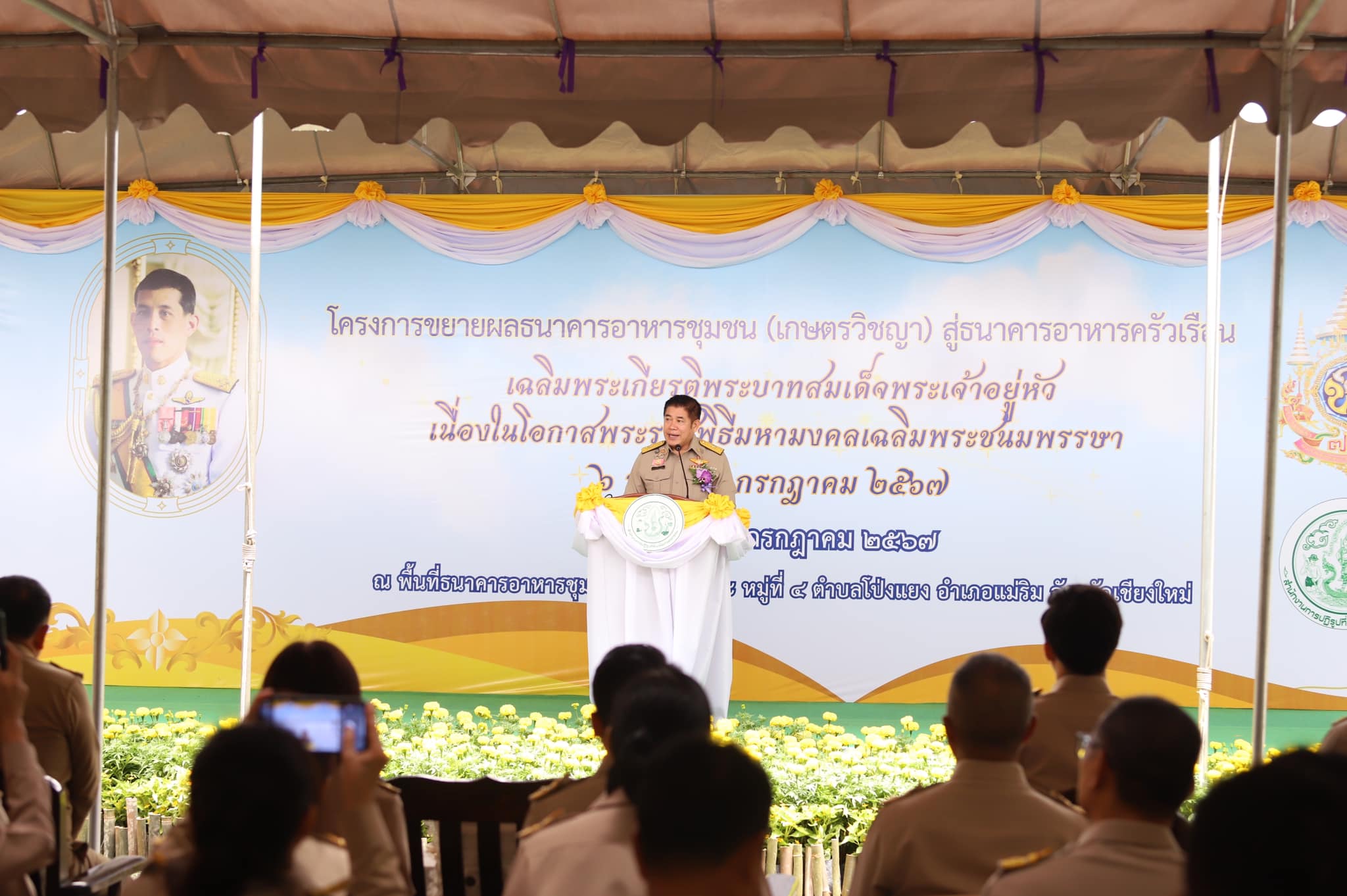 เป็นประธานในพิธีเปิดโครงการขยายผลธนาคารอาหารชุมชน (เกษตรวิชญา) สู่ธนาคารอาหารครัวเรือน เฉลิมพระเกียรติพระบาทสมเด็จพระเจ้าอยู่หัว เนื่องในโอกาสพระราชพิธีมหามงคลเฉลิมพระชนมพรรษา 6 รอบ 28 กรกฎาคม 2567 พร้อมด้วย นายประยูร อินสกุล ปลัดกระทรวงเกษตรและสหกรณ์ และคณะผู้บริหารในสังกัดกระทรวงเกษตรฯ