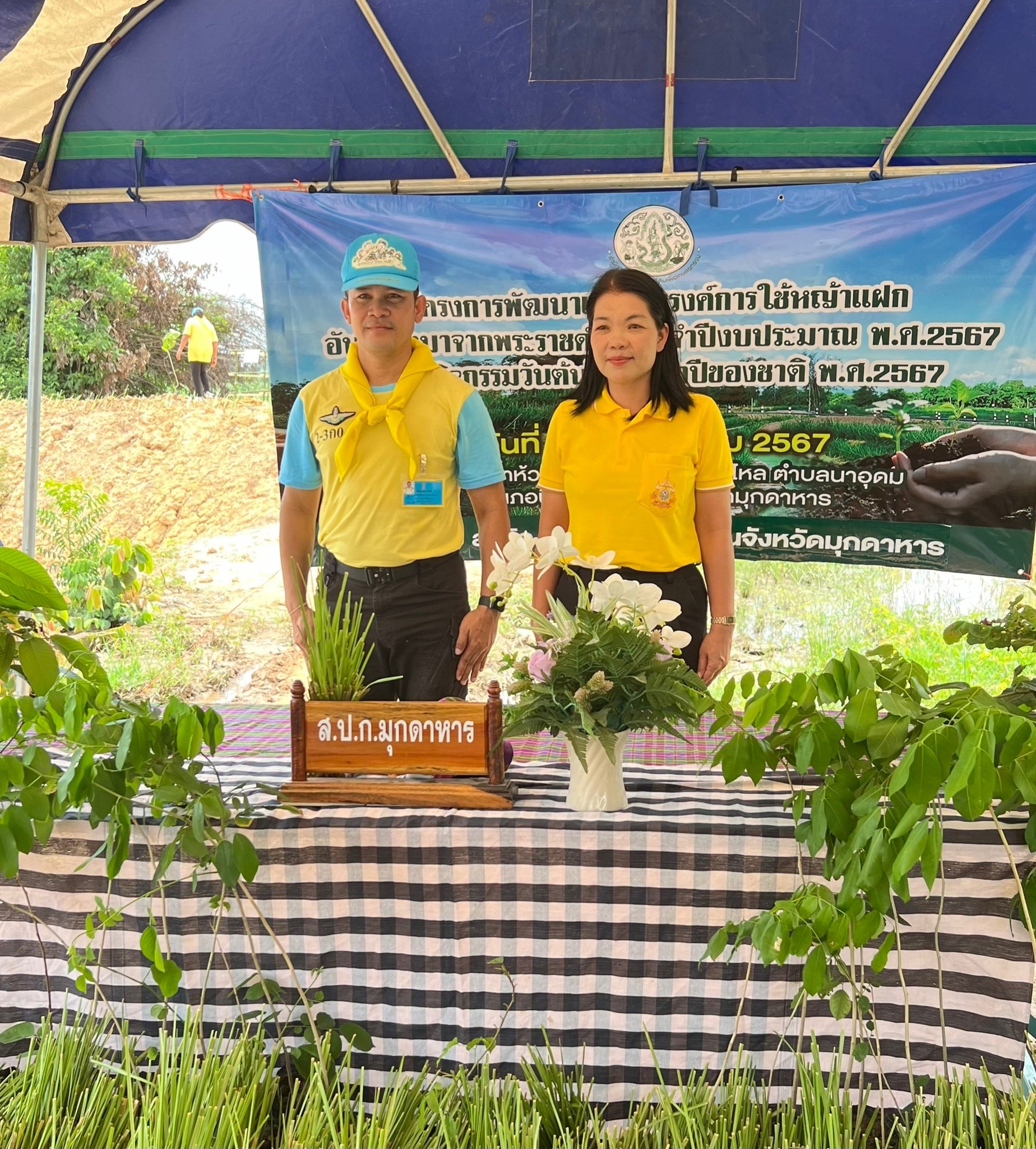 วันที่ 29 พฤษภาคม 2567 นางสาวกุหลาบ สุนนท์ ปฏิรูปที่ดินจังหวัดมุกดาหาร พร้อมคณะเจ้าหน้าที่ ส.ป.ก.มุกดาหาร และประชาชนในพื้นที่ ร่วมจัดกิจกรรมโครงการพัฒนาและรณรงค์การใช้หญ้าแฝกอันเนื่องมาจากพระราชดำริ และกิจกรรมวันต้นไม้ประจำปีของชาติ พ.ศ.2567 ณ แหล่งน้ำห้วยโสกปลาดุก บ้านคำไหล หมู่ 5 ตำบลนาอุดม อำเภอนิคมคำสร้อย จังหวัดมุกดาหาร ซึ่งในการจัดกิจกรรมดังกล่าว ได้รับการสนับสนุนกล้าหญ้าแฝก จำนวน 45,000 กลัา จากสถานีพัฒนาที่ดินจังหวัดมุกดาหาร / กล้าไม้ป่า จำนวน 300 ต้น จากสถานีเพาะชำกล้าไม้จังหวัดมุกดาหาร โดยการจัดกิจกรรมในครั้งนี้ มีวัตถุประสงค์เพื่อเป็นการสนองแนวพระราชดำริฯ ในการรณรงค์การใช้หญ้าแฝกในการพัฒนา ทรัพยากรดิน ทรัพยากรน้ำ และสภาพแวดล้อม พัฒนาอนุรักษ์ดิน และน้ำ และป้องกันการพังทลายของหน้าดิน ปรับปรุงสภาพแวดล้อม และสร้างจิตสำนึกการมีส่วนร่วมในการฟื้นฟูพื้นที่แหล่งน้ำและป่าชุมชนให้มีความอุดมสมบูรณ์ เพิ่มพื้นที่สีเขียวให้กับท้องถิ่น