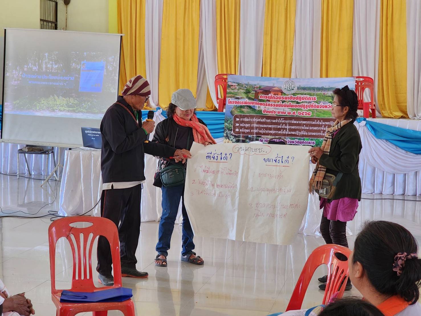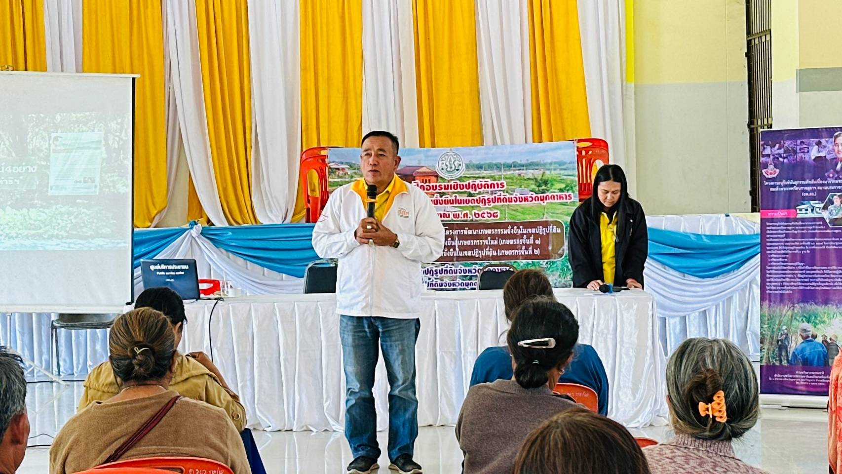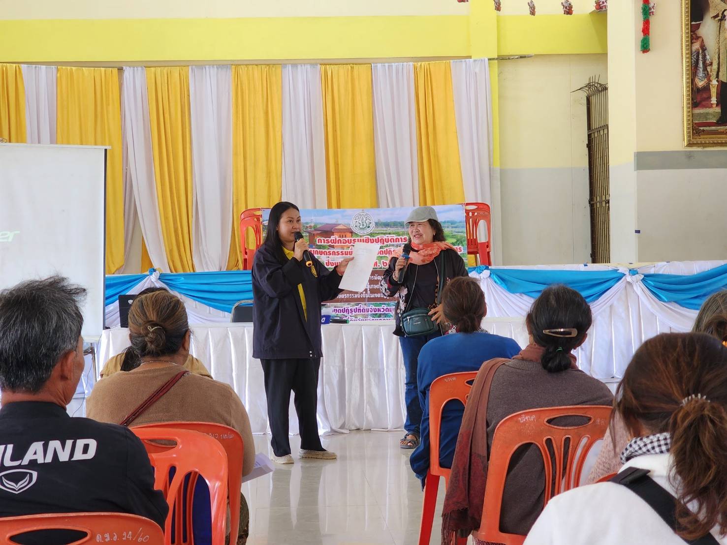 วันที่ 21 มกราคม 2568 นางสาวกุหลาบ สุนนท์ ปฏิรูปที่ดินจังหวัดมุกดาหาร ร่วมกิจกรรมและพบปะเกษตรในการฝึกอบรมโครงการเกษตรกรรมยั่งยืนในเขตปฏิรูปที่ดินจังหวัดมุกดาหาร ปีงบประมาณ พ.ศ. 2568 อบรมเกษตรกรขั้นที่ 1 หลักสูตร “การขยายผลเกษตรกรรมยั่งยืนสู่เกษตรกรรายใหม่” (เกษตรกรเชิงเดี่ยว) ณ เขตปฏิรูปที่ดินตำบลดงมอน อำเภอเมืองมุกดาหาร จำนวน 96 ราย เพื่อส่งเสริมและสนับสนุนให้เกษตรกรปรับเปลี่ยนพื้นที่การผลิตสู่ระบบเกษตรกรรมยั่งยืน เกษตรกรมีคุณภาพชีวิตที่ดีขึ้น มีความมั่นคงด้านอาหาร และรายได้ มีภูมิคุ้มกัน มีระบบนิเวศเกษตร สภาพแวดล้อมในชุมชนที่ดีขึ้น สอดคล้องกับสภาพภูมินิเวศในแปลงเกษตรกรรม ภูมิสังคม ส่งเสริมให้เกษตรกรมีความสามารถใช้ประโยชน์ที่ดินอย่างมีประสิทธิภาพ ยกระดับสินค้าเกษตรให้มีคุณภาพมีมาตรฐานและมีมูลค่าสูงขึ้น ทั้งนี้ขอขอบพระคุณทางผู้นำชุมชนในพื้นที่ในการขับเคลื่อนให้บรรลุวัตถุประสงค์ และขอขอบคุณ โรงเรียนดงมอนวิทยาคมที่ให้ความอนุเคราะห์สถานที่ในการฝึกอบรมในครั้งนี้