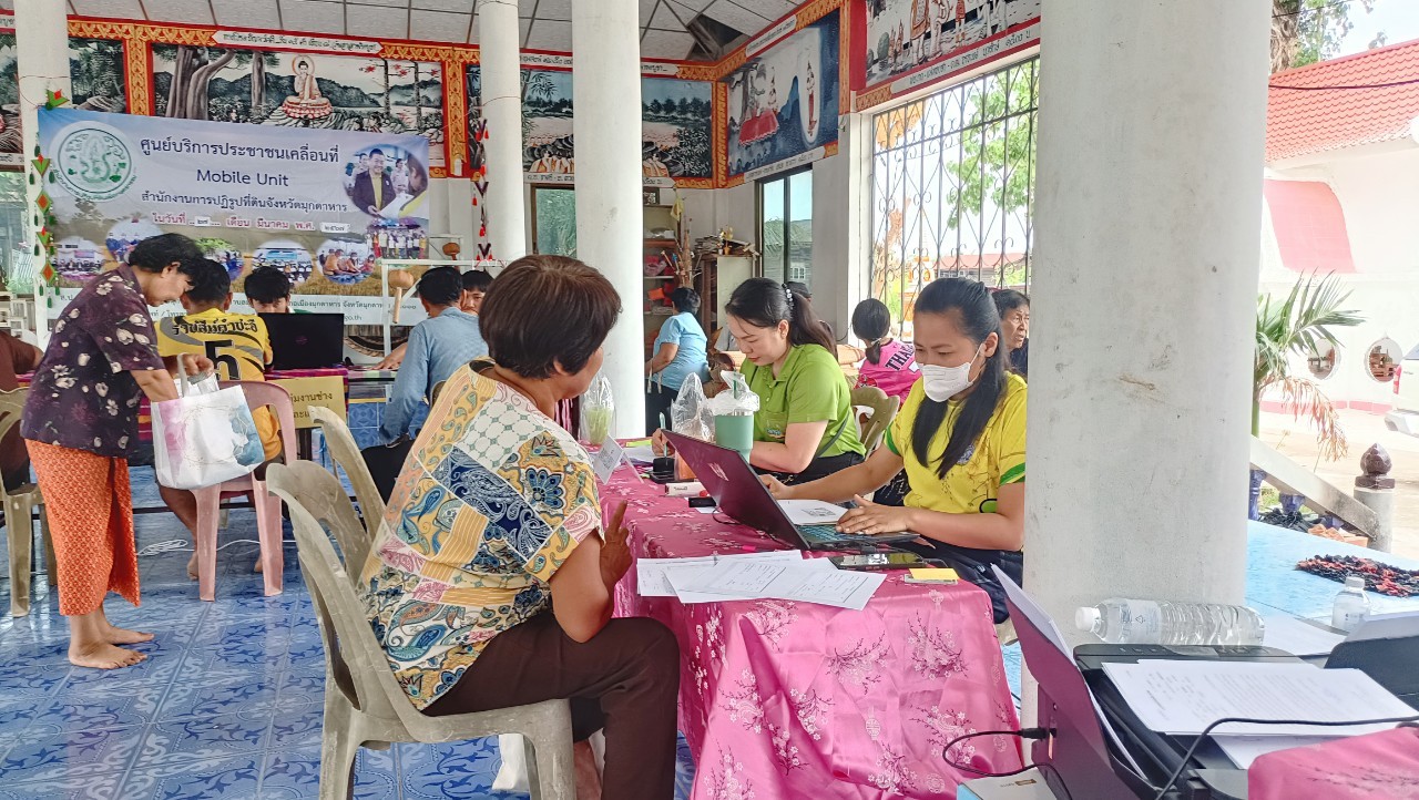 เมื่อวันที่ 27 มีนาคม 2567 นางสาวกุหลาบ สุนนท์ ปฏิรูปที่ดินจังหวัดมุกดาหาร มอบหมายเจ้าหน้าที่ของสำนักงานการปฏิรูปที่ดินจังหวัดมุกดาหาร จัดกิจกรรมโครงการศูนย์บริการประชาชนเคลื่อนที่ (Mobile unit) ณ ตำบลเหล่าสร้างถ่อ อำเภอคำชะอี จังหวัดมุกดาหาร เพื่อเป็นการช่วยเหลือเกษตรกรในเขตปฏิรูปที่ดินที่อยู่ห่างไกลจากการบริการ รวมทั้งช่วยลดค่าใช้จ่ายและประหยัดเวลาในการเดินทางไปติดต่อราชการ โดยมีกิจกรรมที่ให้บริการ เช่น มอบ ส.ป.ก.4-01 รับคำร้อวขอออกโฉนดเพื่อการเกษตร รับคำร้องดำเนินการรังวัดที่ดินตกสำรวจในเขตปฏิรูปที่ดิน รับคำร้องขอรับการจัดที่ดินแทนที่ กรณีสละสิทธิ กรณีถึงแก่ความตาย และให้คำปรึกษาเกี่ยวกับกฎหมายปฏิรูปที่ดิน โดยได้รับความร่วมมือจากผู้ปกครองท้องที่ในการประชาสัมพันธ์ และเกษตรกรในท้องที่ให้ความสนใจและมารับบริการเป็นจำนวนมาก