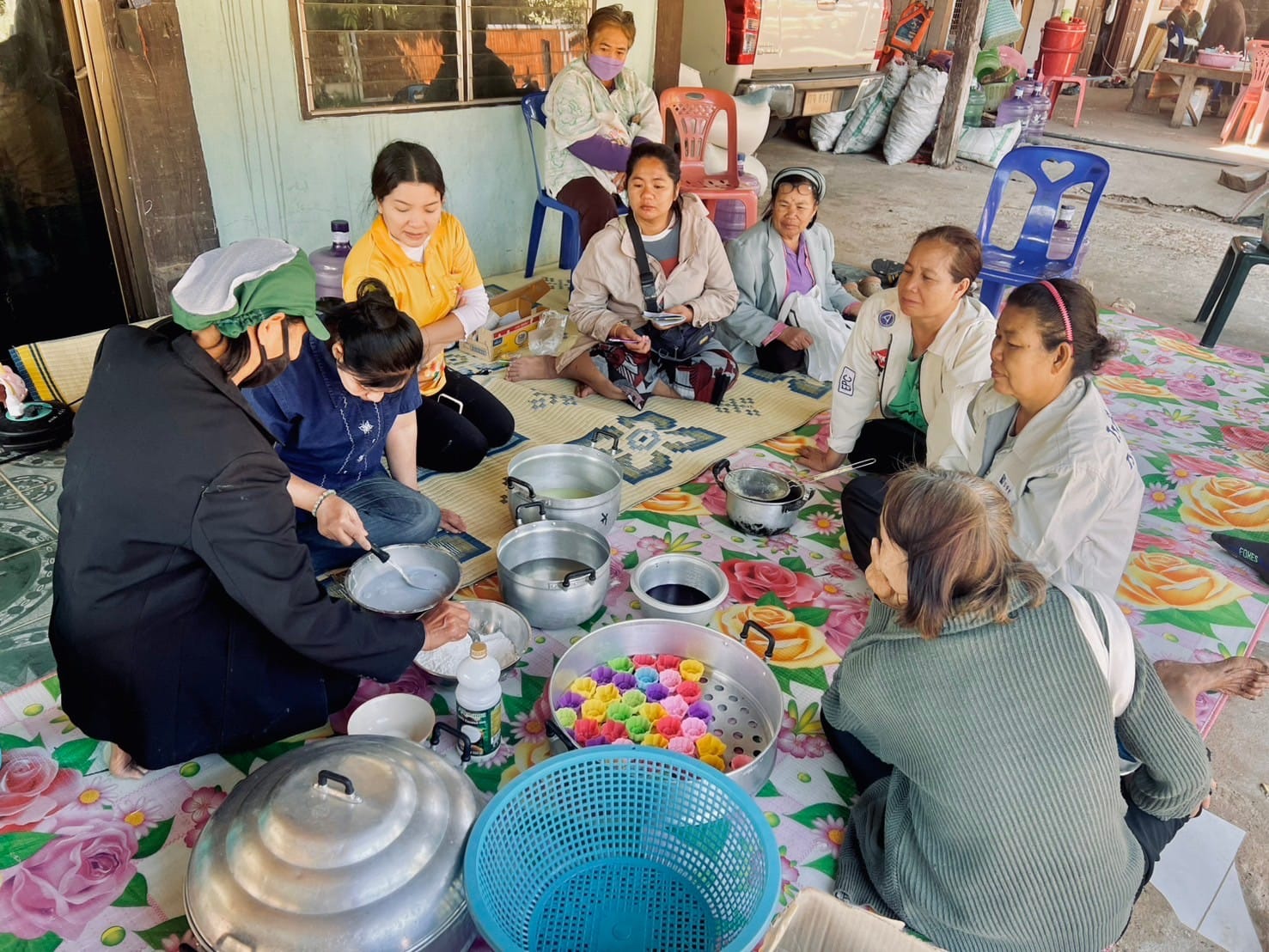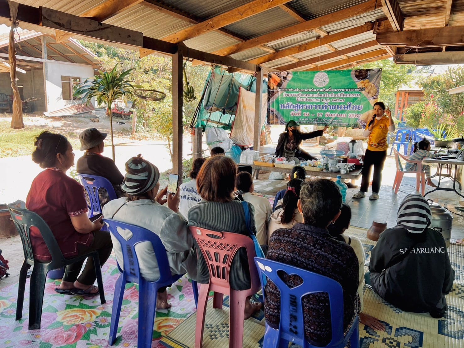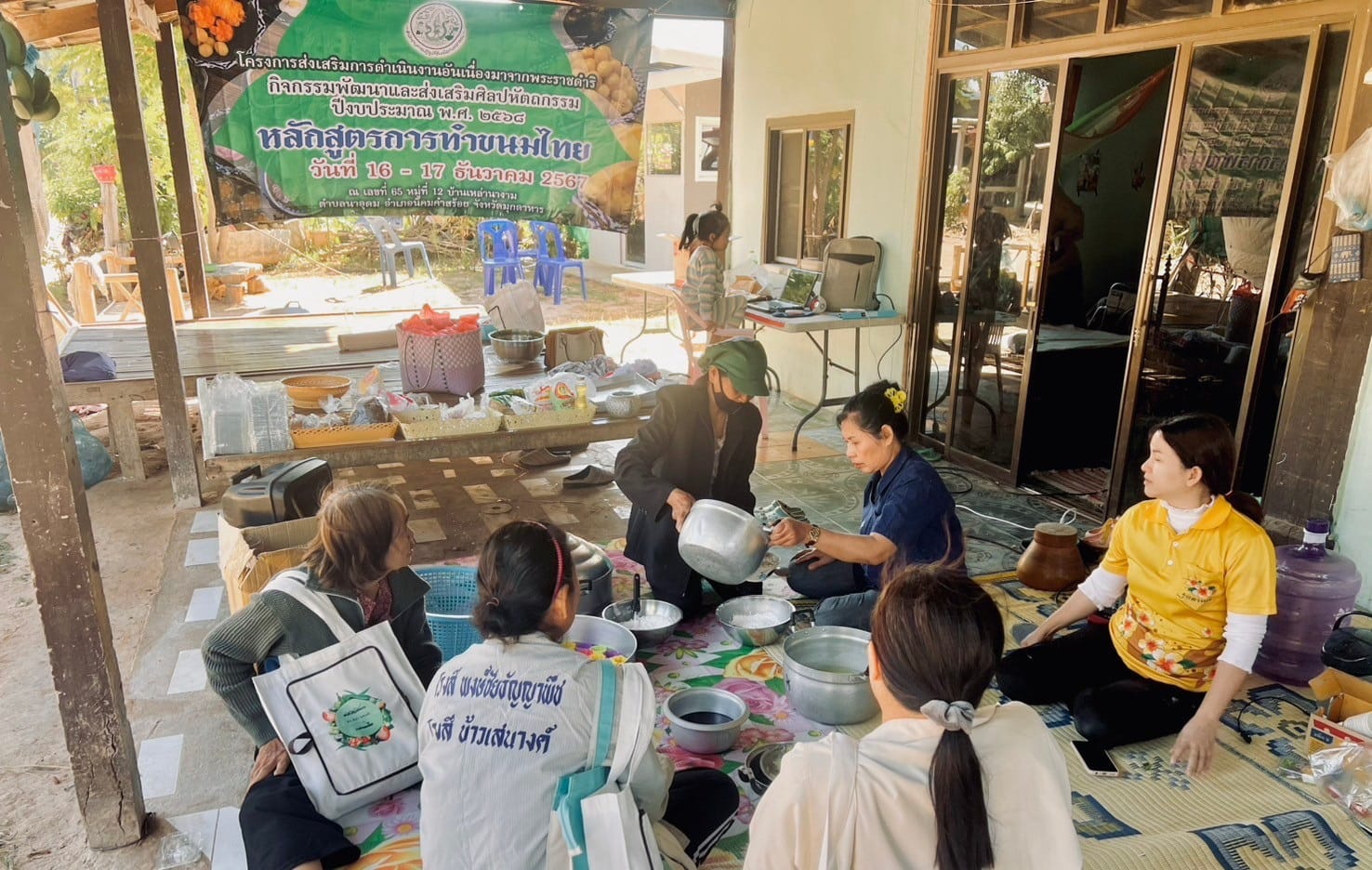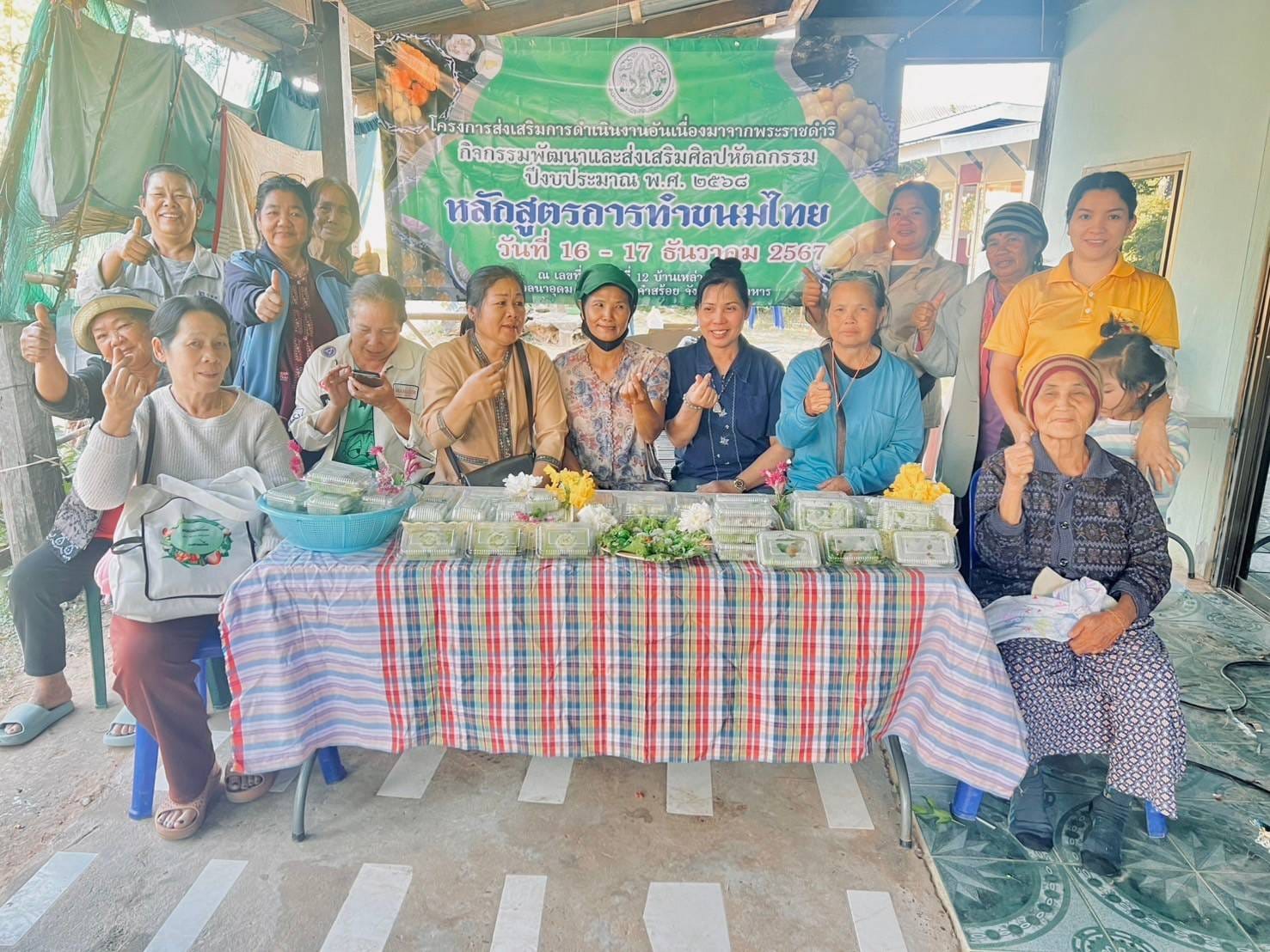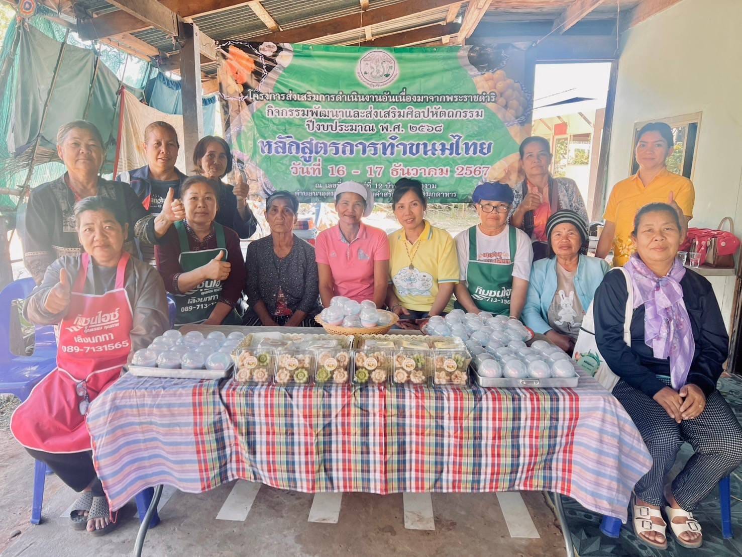 วันที่ 16 -17 ธันวาคม 2567 นางสาวกุหลาบ สุนนท์ ปฏิรูปที่ดินจังหวัดมุกดาหาร มอบหมายให้ นางสาวณัฐวีร์ กลางประพันธ์ นักวิชาการปฏิรูปที่ดินชำนาญการ พร้อมเจ้าหน้าที่กลุ่มยุทธศาสตร์และการปฏิรูปที่ดิน ดำเนินงานจัดฝึกอบรมโครงการส่งเสริมการดำเนินงานอันเนื่องมาจากพระราชดำริ กิจกรรมพัฒนาและส่งเสริมศิลปหัตถกรรม ปีงบประมาณ พ.ศ. 2568 หลักสูตร การทำขนมไทย ณ บ้านเหล่านางาม หมู่ 12 ตำบลนาอุดม อำเภอนิคมคำสร้อย จังหวัดมุกดาหาร (จำนวน 12 ราย) โดยมีวัตถุประสงค์เพื่อสนองงานตามโครงการพระราชดำริฯ สนับสนุนส่งเสริมและอนุรักษ์ศิลปหัตถกรรมสร้างอาชีพเสริมและเพิ่มรายได้ให้แก่เกษตรกรพร้อมนี้ ได้ให้บริการรับคำขอออกโฉนดเพื่อการเกษตรและมอบโฉนดเพื่อการเกษตร เพื่อเป็นการช่วยเหลือเกษตรกรในเขตปฏิรูปที่ดินที่อยู่ห่างไกลจากการบริการ รวมทั้งช่วยลดค่าใช้จ่ายและประหยัดเวลาในการเดินทางไปติดต่อราชการ ที่ ส.ป.ก.มุกดาหาร