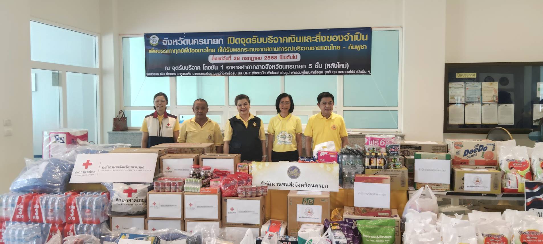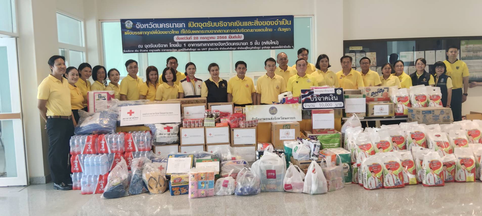 วันจันทร์ที่ 28 กรกฎาคม 2568 นำโดย นางสาวดวงขวัญ ทวีวชิรา ปฏิรูปที่ดินจังหวัดนครนายก พร้อมด้วยเจ้าหน้าที่ ร่วมการบริจาคสิ่งของจำเป็น เพื่อบรรเทาทุกข์พี่น้องชาวไทย ที่ได้รับผลกระทบจากสถานการณ์ชายแดน ไทย - กัมพูชา ณ โถงชั้น 1 อาคารศาลากลางจังหวัดนครนายก (หลังใหม่)