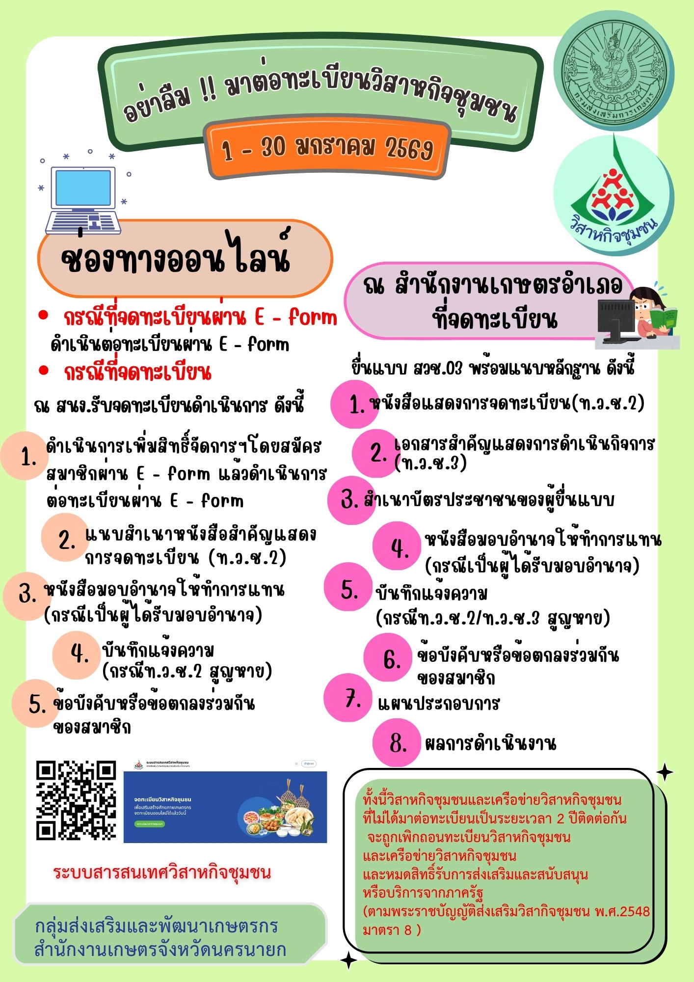 อย่าลืม !!! มาต่อทะเบียนวิสาหกิจชุมชน