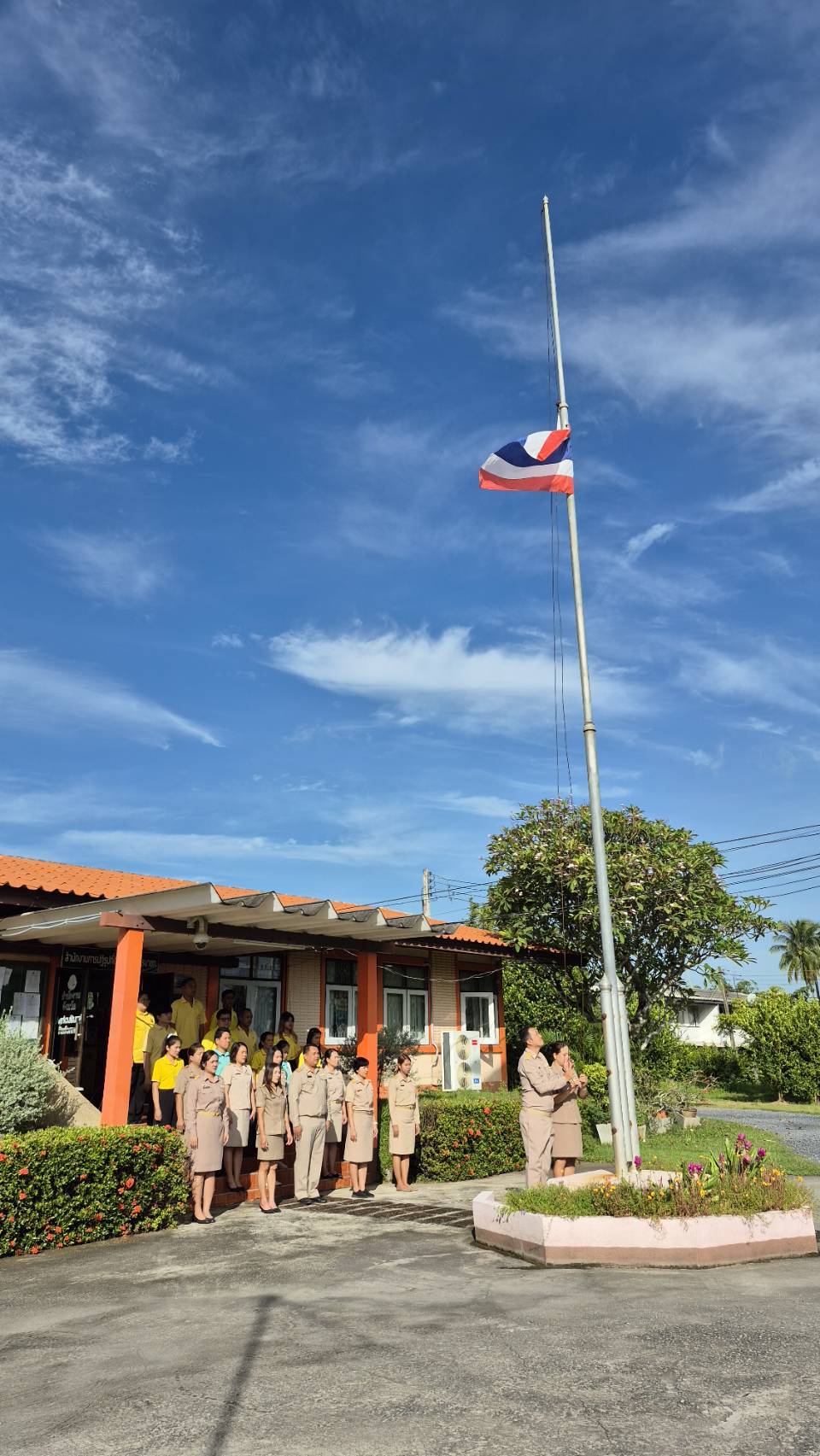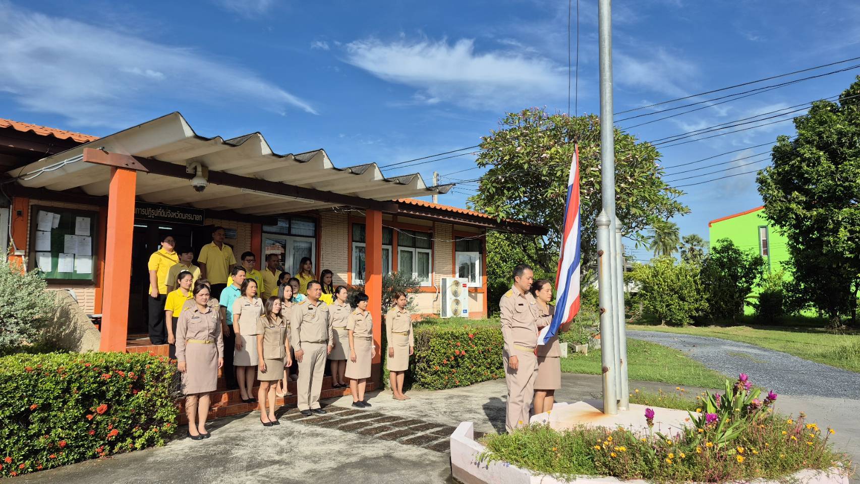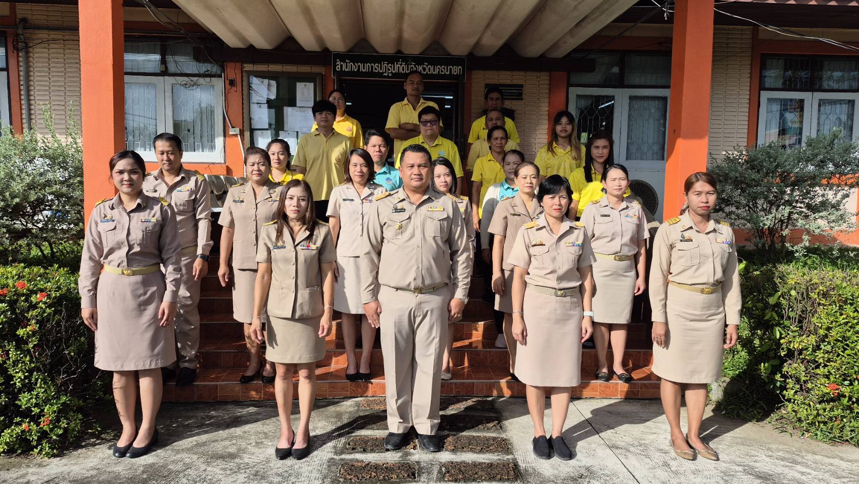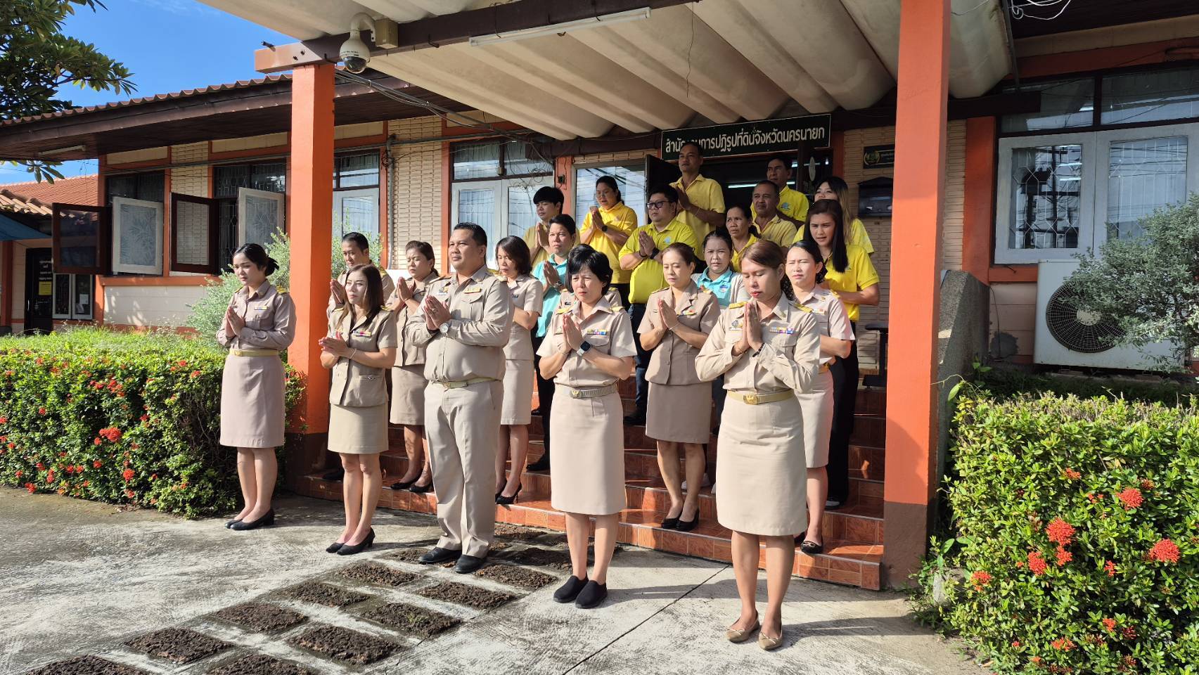 วันจันทร์ที่ 4 สิงหาคม 2568 โดย นางสาวดวงขวัญ ทวีวชิรา ปฏิรูปที่ดินจังหวัดนครนายก มอบหมายเจ้าหน้าที่ ส.ป.ก.นครนายก ทำกิจกรรมเคารพธงชาติ และร้องเพลงชาติไทยสวดมนต์แสดงความจงรักภักดีต่อชาติ ศาสนา พระมหากษัตริย์ รณรงค์ให้ข้าราชการปฏิบัติตน ตามคำถวายสัตย์ปฏิญาณ ตระหนักและรักในอาชีพหน้าที่ของตนเพื่อประโยชน์ของส่วนร่วม ณ ลานด้านหน้าอาคาร ส.ป.ก.นครนายก