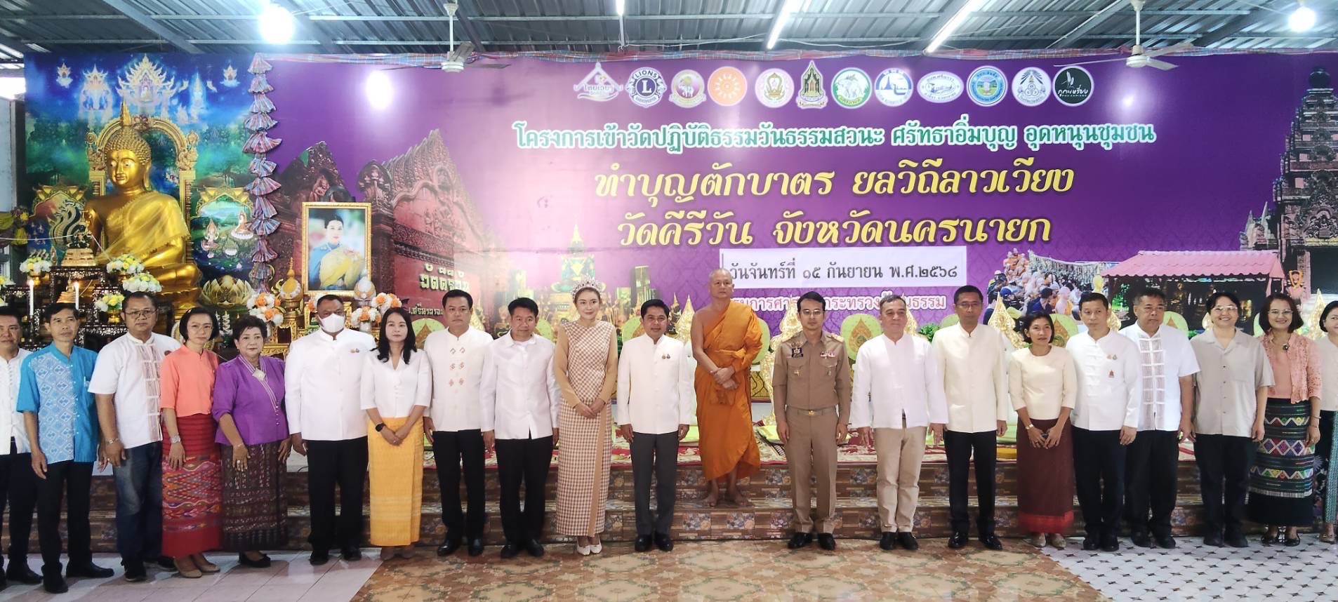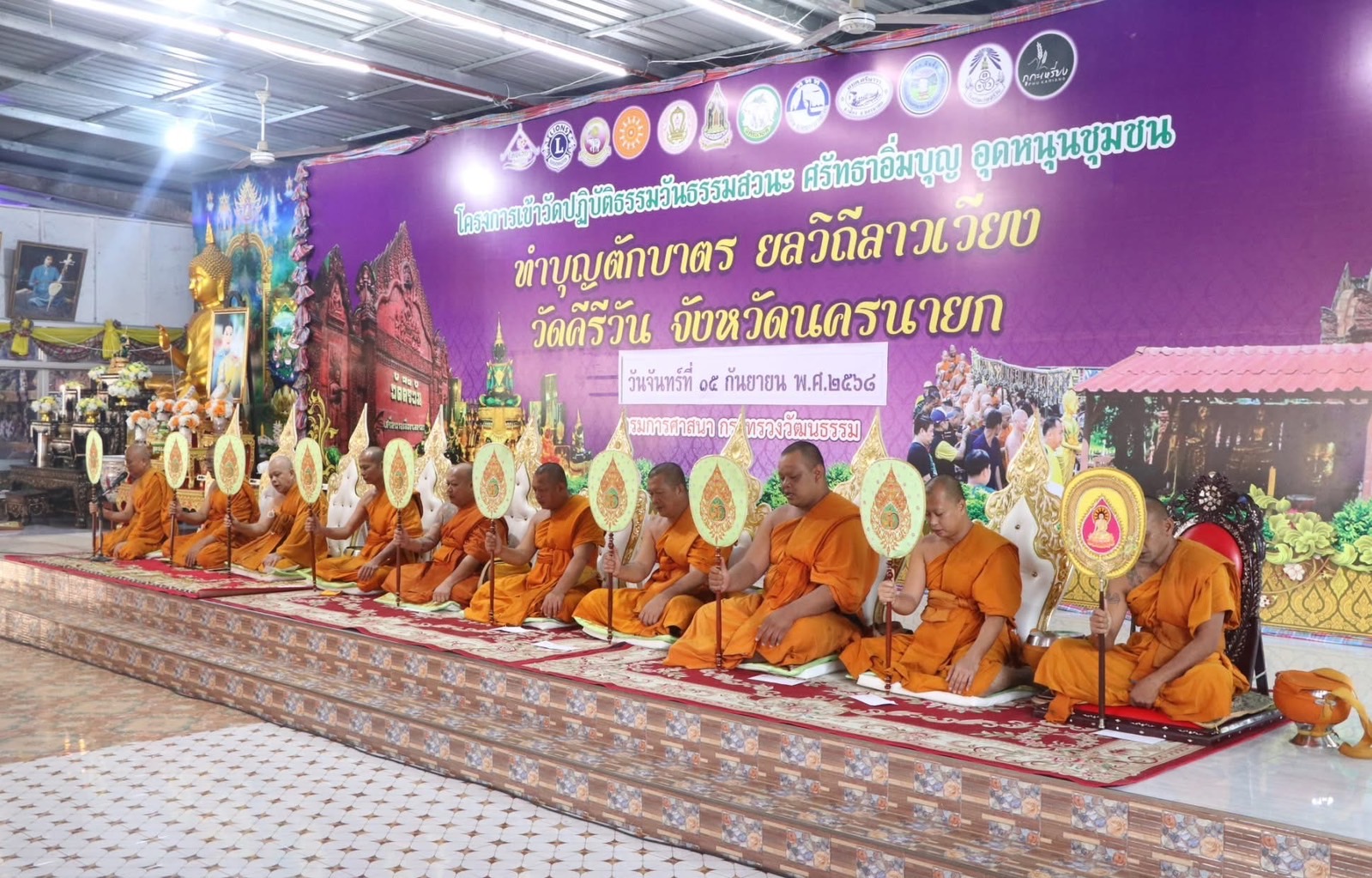 วันจันทร์ที่ 15 กันยายน 2568 นำโดย นางสาวดวงขวัญ ทวีวชิรา ปฏิรูปที่ดินจังหวัดนครนายก พร้อมเจ้าหน้าที่ ร่วมงานโครงการเข้าวัดปฏิบัติธรรมวันธรรมสวนะ ศรัทธาอิ่มบุญ อุดหนุนชุมชน "ทำบุญตักบาตร ยลวิถีลาวเวียง" ณ วัดคีรีวัน อำเภอเมืองฯ จังหวัดนครนายก โดยมี นายชานน วาสิกศิริ ผู้ว่าราชการจังหวัดนครนายก เป็นประธาน