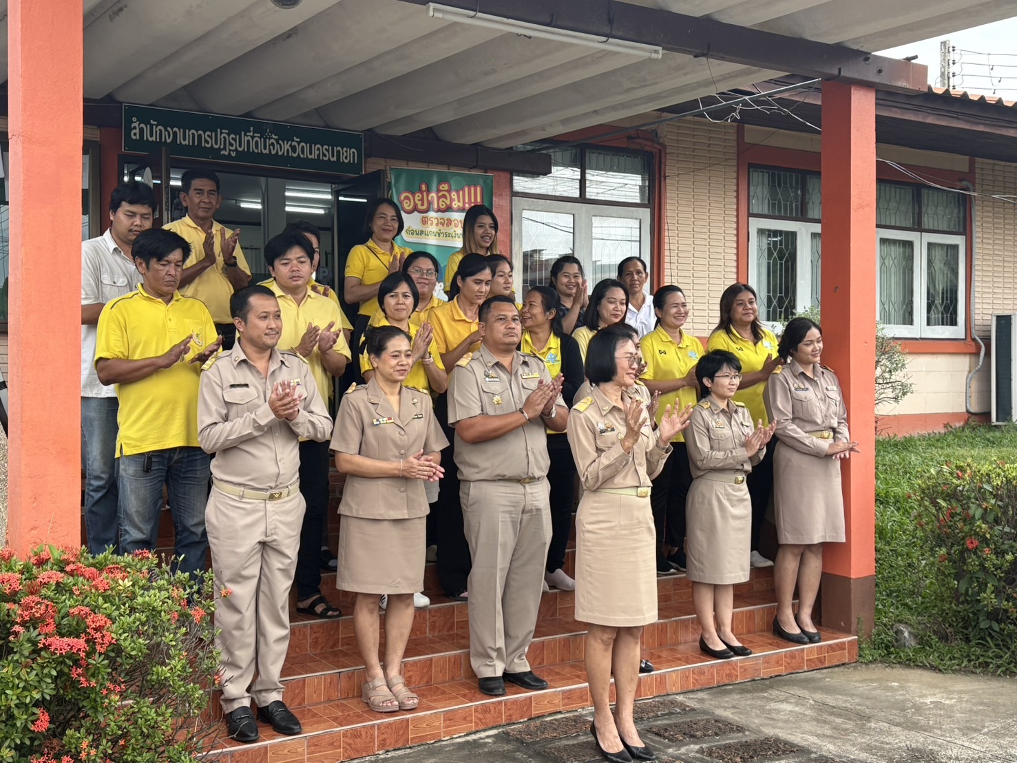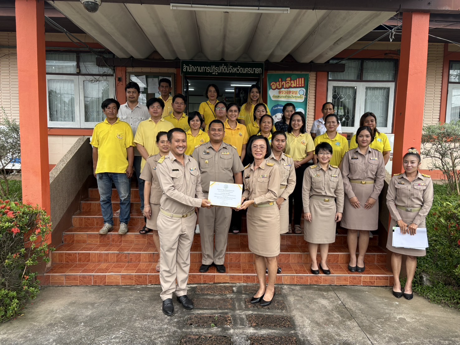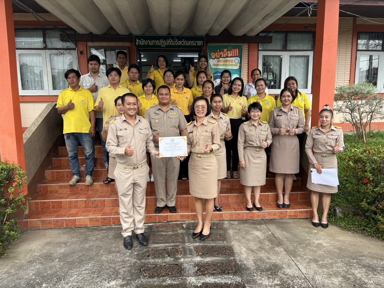 วันจันทร์ที่ 22 กันยายน 2568 นำโดย นางสาวดวงขวัญ ทวีวชิรา ปฏิรูปที่ดินจังหวัดนครนายก พร้อมด้วยเจ้าหน้าที่ ได้จัดกิจกรรมมอบเกียรติบัตร ให้แก่ นายอภิชาติ อินทรเศียร ตำแหน่ง เจ้าหน้าที่ปฏิรูปที่ดิน ผู้ได้รับการพิจารณาคัดเลือกตามหลักเกณฑ์วินัยการแต่กาย ซึ่งเป็นผู้มีคะแนนสูงสุด ตามโครงการกิจกรรมวินัยเริ่มด้วยที่การแต่งกายภายใต้แผนปฏิบัติการส่งเสริมคุณธรรมของ ส.ป.ก.นครนายก ประจำปีงบประมาณ พ.ศ.2568 แผนย่อยที่1 แนวทางพัฒนาที่ 2 ยกย่องเชิดชูเกียรติบุคคล ชุมชน องค์กร อำเภอ จังหวัดคุณธรรมเพื่อส่งเสริมวินัยเจ้าหน้าที่ ส.ป.ก.นครนายก ผ่านพฤติกรรมการแต่งกาย