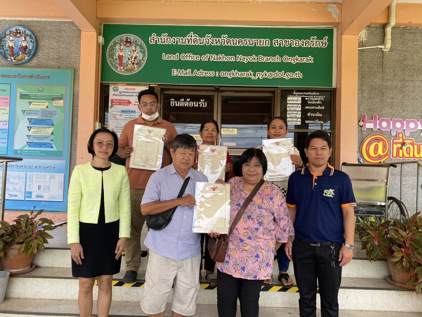 เมื่อวันพฤหัสบดีที่ 25 กันยายน 2568 และวันศุกร์ที่ 26 กันยายน 2568 สำนักงานการปฏิรูปที่ดินจังหวัดนครนายก นำโดย นางสาวดวงขวัญ ทวีวชิรา ปฏิรูปที่ดินจังหวัดนครนายก พร้อมด้วยเจ้าหน้าที่กลุ่มกฎหมาย ยื่นจดทะเบียนสิทธิและนิติกรรมโอนที่ดินจากการเช่าชื้อให้แก่ผู้ที่ชำระค่าเช่าซื้อที่ดินครบถ้วนตามสัญญา จำนวน 10 ราย 10 แปลง ณ สำนักงานที่ดินจังหวัดนครนายก และสำนักงานที่ดินจังหวัดนครนายกสาขาองครักษ์