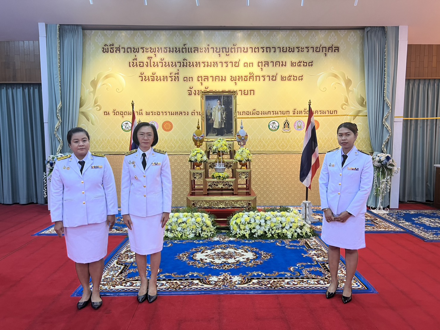 วันจันทร์ที่ 13 ตุลาคม 2568 นำโดย นางสาวดวงขวัญ ทวีวชิรา ปฏิรูปที่ดินจังหวัดนครนายก พร้อมด้วยเจ้าหน้าที่ร่วมกิจกรรมเนื่องในวันนวมินทรมหาราช พิธีสวดพระพุทธมนต์และทำบุญตักบาตรถวายพระราชกุศล ณ ศาลาการเปรียญ วัดอุดมธานี พระรามหลวง ตำบลบ้านใหญ่ อำเภอเมืองนครนายก จังหวัดนครนายก โดยมี นายชานน วาสิกศิริ ผู้ว่าราชการจังหวัดนครนายก เป็นประธาน