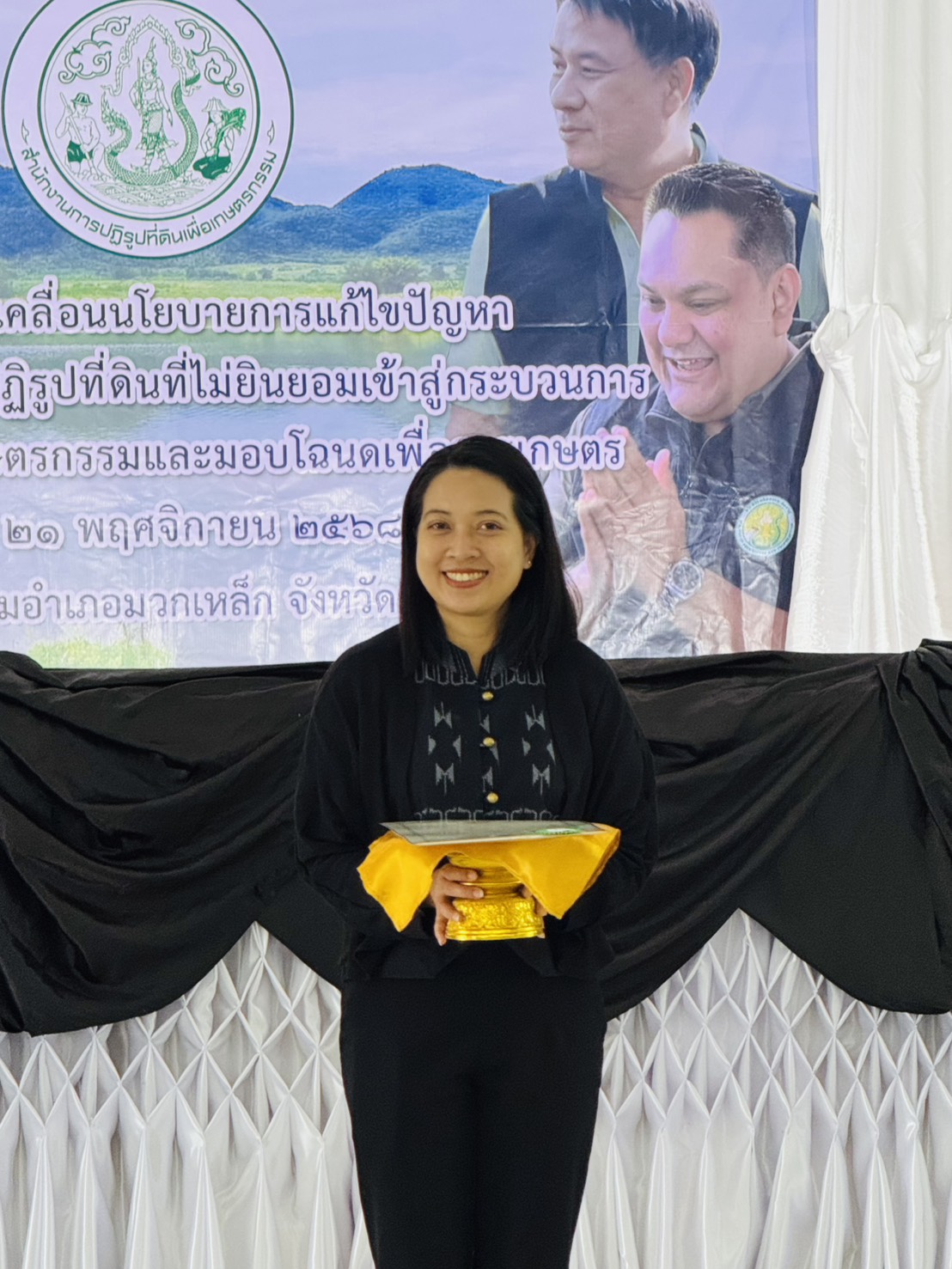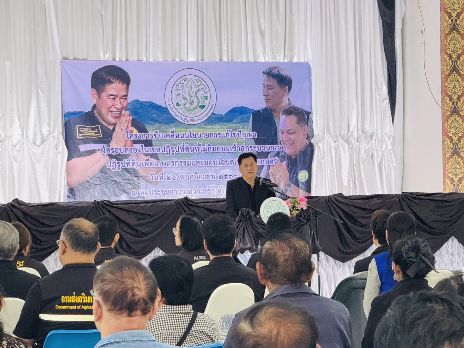 วันศุกร์ที่ 21 พฤศจิกายน 2568 นำโดย นางสาวดวงขวัญ ทวีวชิรา ปฏิรูปที่ดินจังหวัดนครนายก พร้อมด้วยเจ้าหน้าที่ เข้าร่วมโครงการขับเคลื่อนนโยบายการแก้ไขปัญหาผู้ครอบครองในเขตปฏิรูปที่ดินที่ไม่ยินยอมเข้าสู่กระบวนการปฏิรูปที่ดินเพื่อเกษตรกรรมและมอบโฉนดเพื่อเกษตรกรรม ณ หอประชุม อำเภอมวกเหล็ก จังหวัดสระบุรี โดยมี นายบัญชา เชาวรินทร์ ผู้ว่าราชการจังหวัดสระบุรี เป็นประธาน ทั้งนี้รองนายกรัฐมนตรีและรัฐมนตรีว่าการกระทรวงเกษตรและสหกรณ์ ทักทาย ส.ป.ก.จังหวัดที่ร่วมจัดงาน ผ่านระบบ Zoom พร้อมกันกับสถานที่จัดงานศูนย์กลางจังหวัดราชบุรี