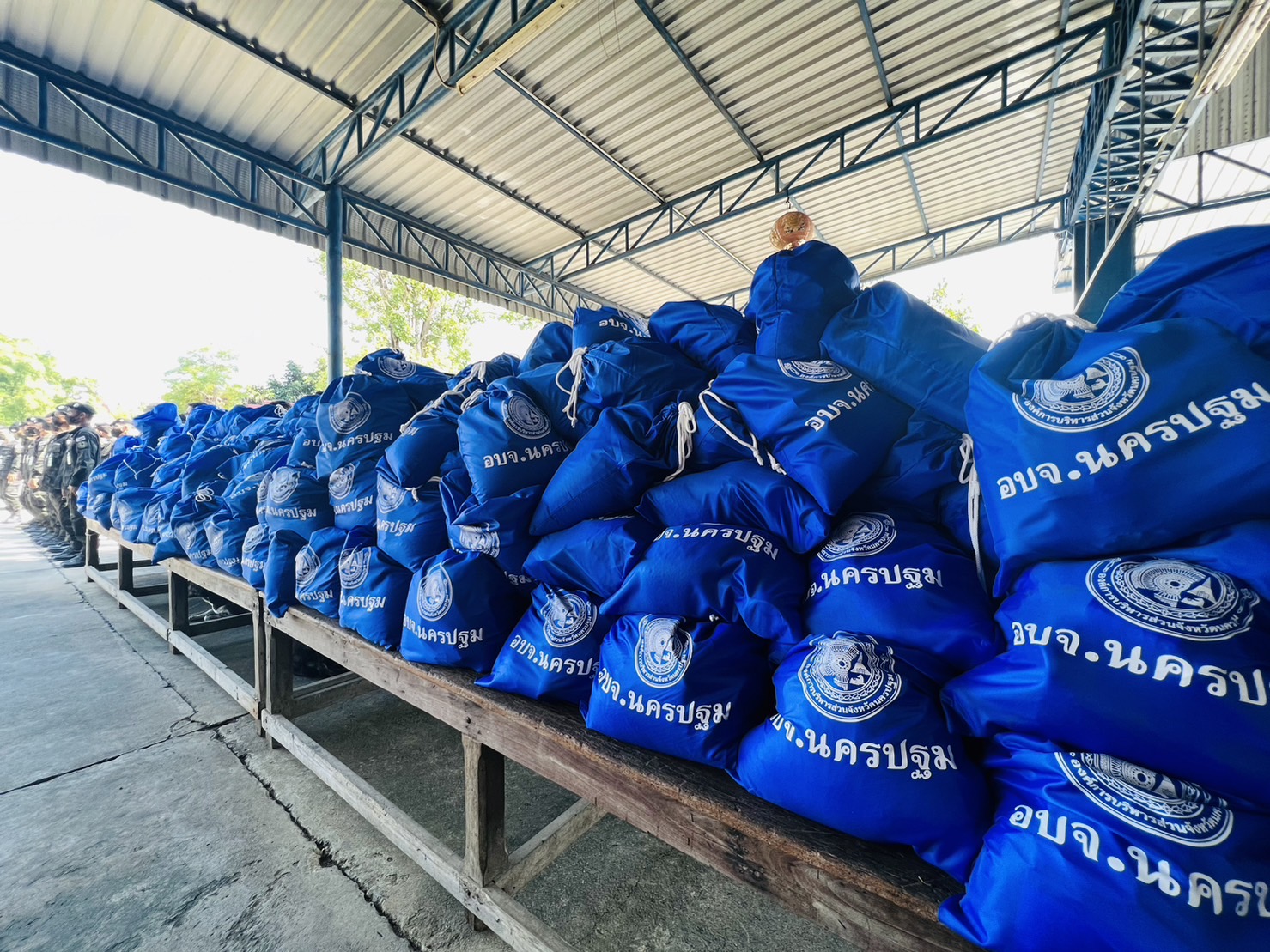 มอบถุงยังชีพพระราชทานให้แก่ประชาชนที่ประสบอุทกภัย พร้อมทั้งบรรจุกระสอบทรายและปรับภูมิทัศน์บริเวณรอบ ณ วัดสำโรง อำเภอนครชัยศรี จังหวัดนครปฐม ในการนี้ได้รับเกียรติจากนายสุรศักดิ์ เจริญศิริโชติ ผู้ว่าราชการจังหวัดนครปฐม เป็นประธานในกิจกรรมครั้งนี้