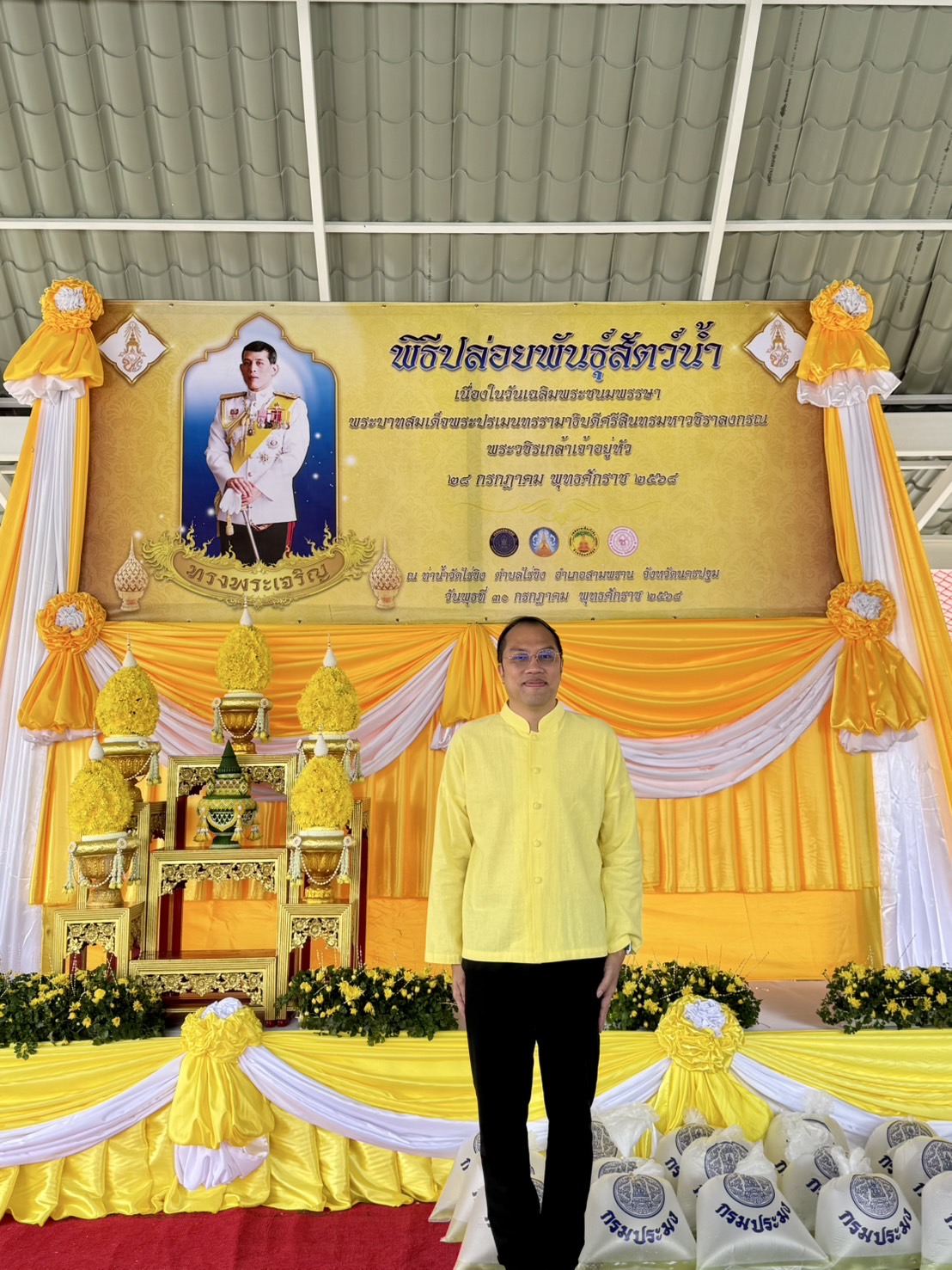 วันที่ 30 กรกฎาคม 2568 เวลา 09.30 น. นายสุพัฒ มูลพฤกษ์ ปฏิรูปที่ดินจังหวัดนครปฐม ร่วมพิธีปล่อยพันธ์ุสัตว์น้ำเนื่องในวันเฉลิมพระชนมพรรษาพระบาทสมเด็จพระปรเมนทรรามาธิบดีศรีสินทรมหาวชิราลงกรณ พระวชิรเกล้าเจ้าอยู่หัว เพื่อเป็นการถวายความจงรักภักดีและถวายเป็นพระราชกุศล อีกทั้งยังเป็นการเพิ่มปริมาณสัตว์น้ำ และอนุรักษ์พันธุ์สัตว์น้ำ โดยมี นางสาวอโรชา นันทมนตรี ผู้ว่าราชการจังหวัดนครปฐม เป็นประธานในพิธี ณ ท่าน้ำวัดไร่ขิง อำเภอสามพราน จังหวัดนครปฐม