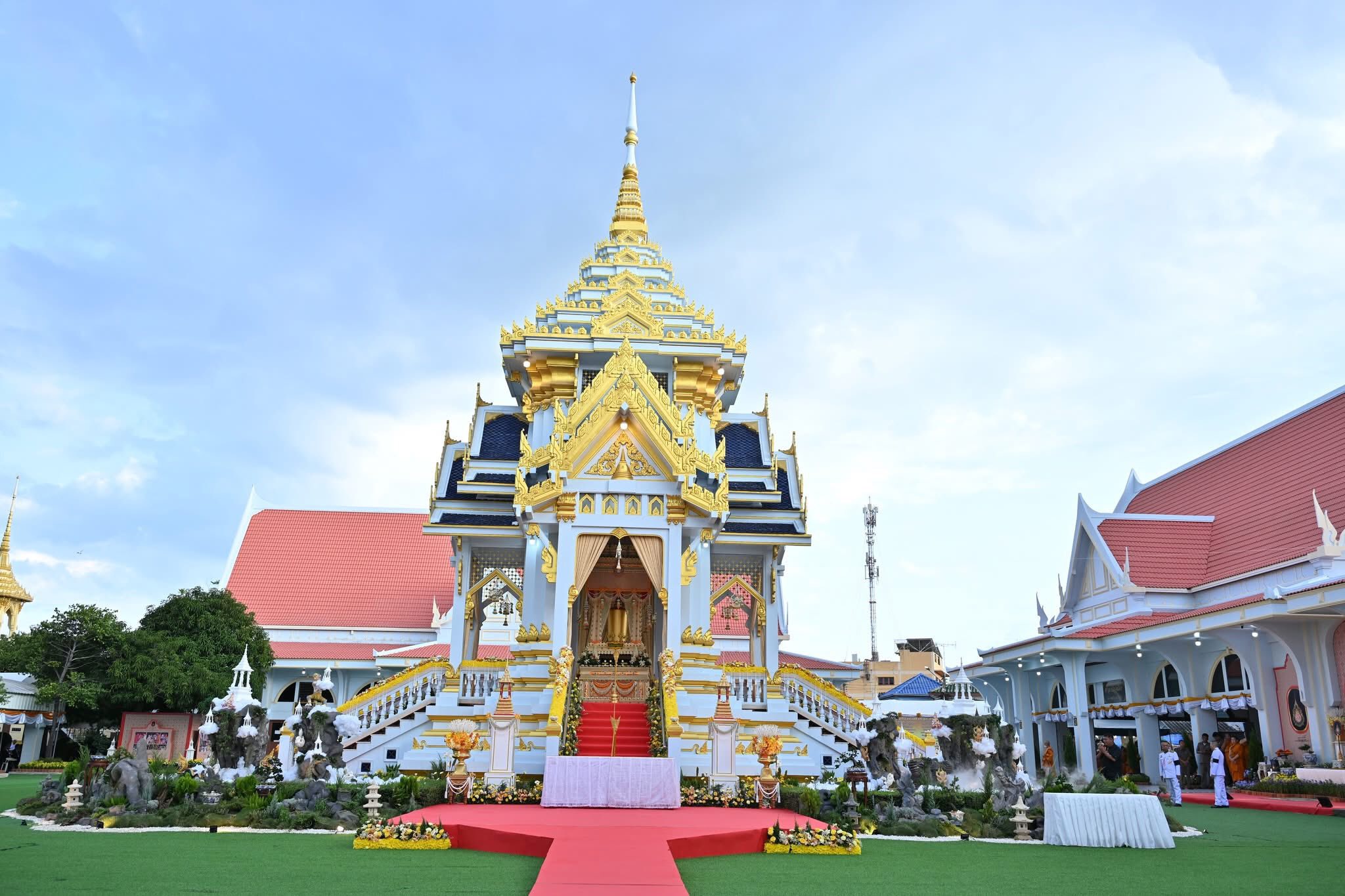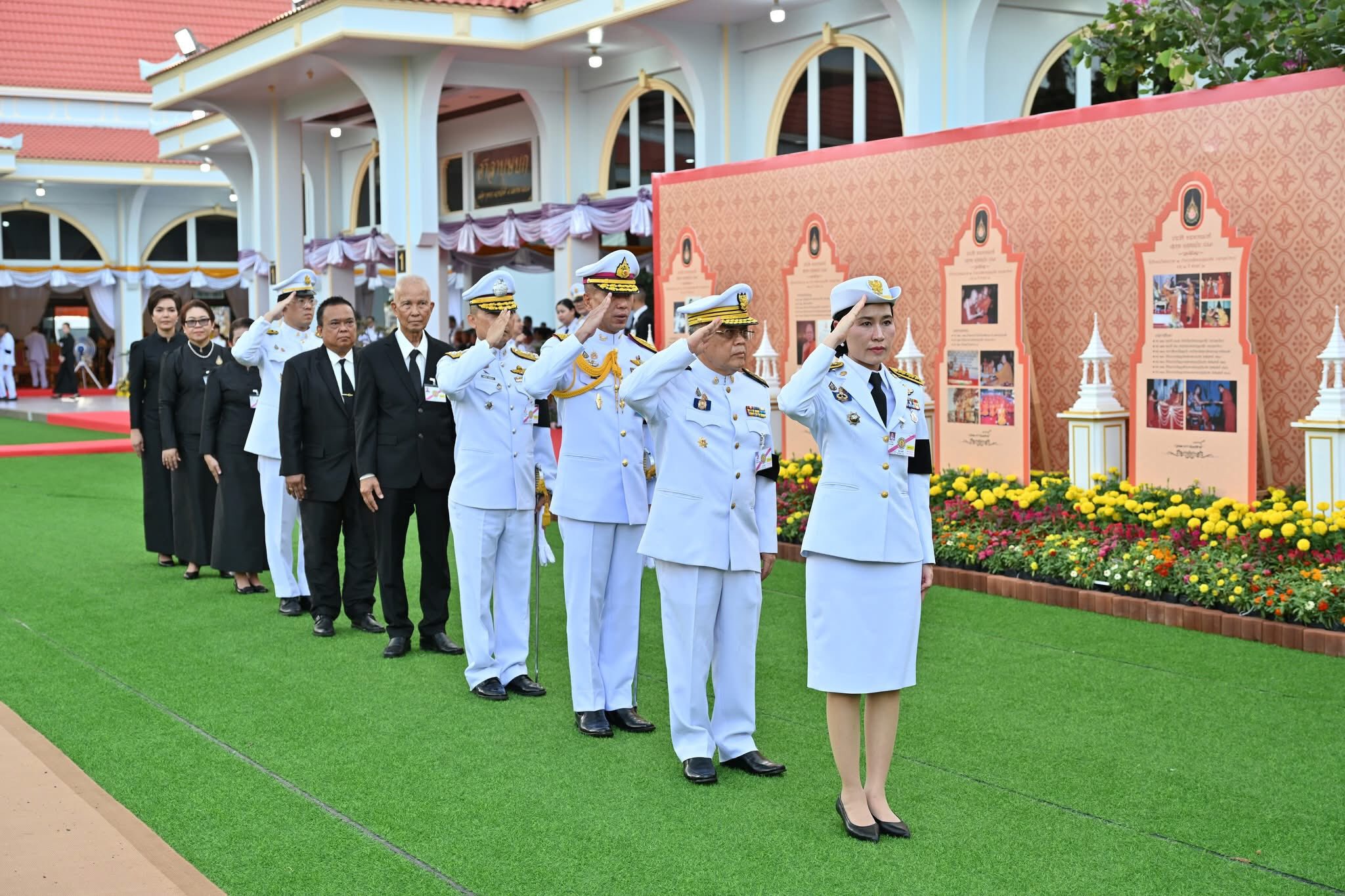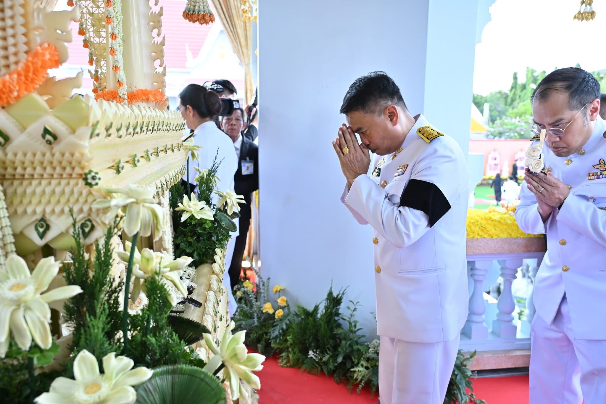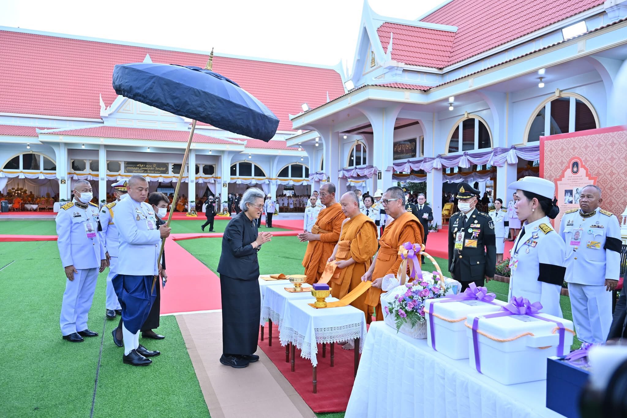 ในการนี้ ทรงทอดผ้าไตร 10 ไตร พระสงฆ์ 10 รูป บังสุกุล จากนั้นทรงหยิบกระทงข้าวตอกดอกไม้วางที่บนพาน ทรงจุดธูปเทียนดอกไม้จันทน์ พระราชทานเพลิง โดยมีพระเถรานุเถระ อดีตผู้ว่าราชการจังหวัดนครปฐม รองผู้ว่าราชการจังหวัดนครปฐม หัวหน้าส่วนราชการ ข้าราชการ ทหาร ตำรวจ และเจ้าหน้าที่จากหน่วยงานต่างๆ ตลอดจนประชาชน ร่วมพิธีเป็นจำนวนมาก