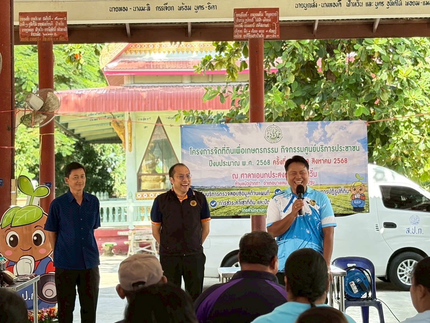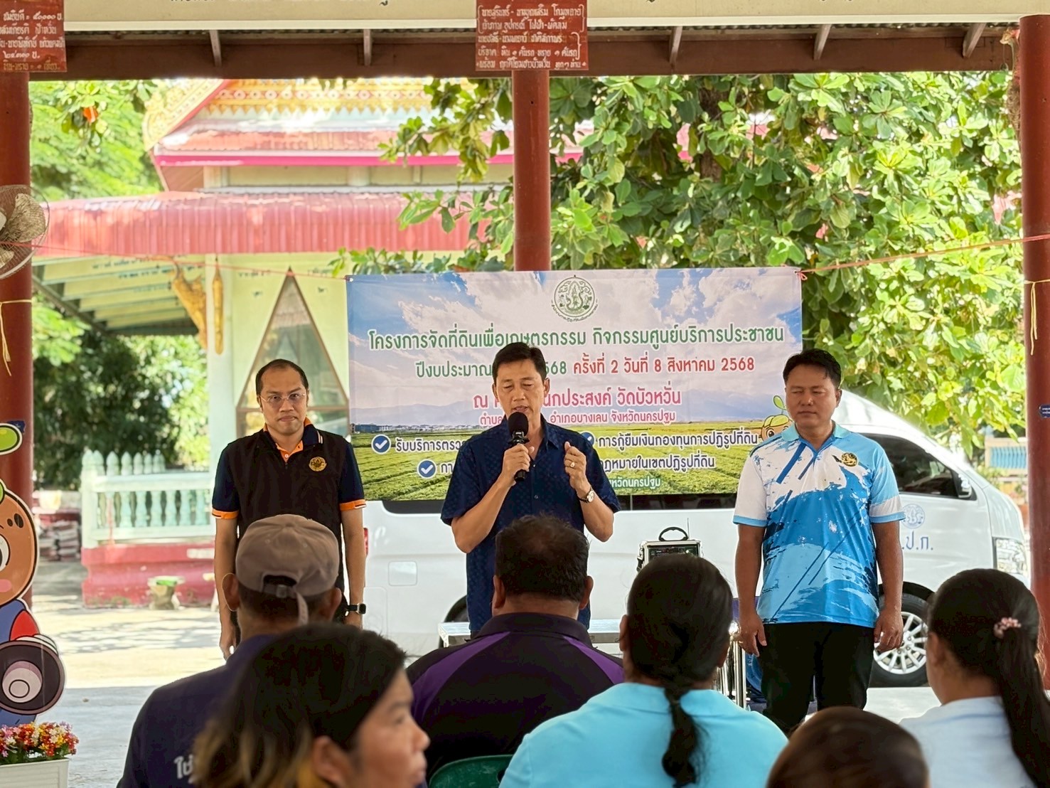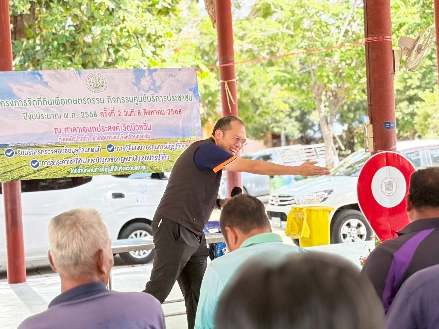 วันที่ 8 สิงหาคม 2568 ส.ป.ก.นครปฐม โดยนายสุพัฒ มูลพฤกษ์ ปฏิรูปที่ดินจังหวัดนครปฐม พร้อมด้วยข้าราชการ และเจ้าหน้าที่ ส.ป.ก.นครปฐม จัดโครงการศูนย์บริการประชาชนในลักษณะศูนย์บริการเคลื่อนที่ Mobile Unit ในระดับอำเภอ ครั้งที่ 2 เพื่อเป็นการช่วยเหลือเกษตรกรในเขตปฏิรูปที่ดินที่อยู่ห่างไกลได้มารับบริการ รวมทั้งช่วยลดค่าใช้จ่ายและประหยัดเวลาในการเดินทางมาติดต่อราชการในตัวจังหวัด พร้อมทั้งเป็นการสร้างการรับรู้ให้เกษตรกรมีความเข้าใจในงานปฏิรูปที่ดินมากยิ่งขึ้น ณ ศาลาเอนกประสงค์ วัดบัวหวั่น ตำบลบัวปากท่า อำเภอบางเลน จังหวัดนครปฐม