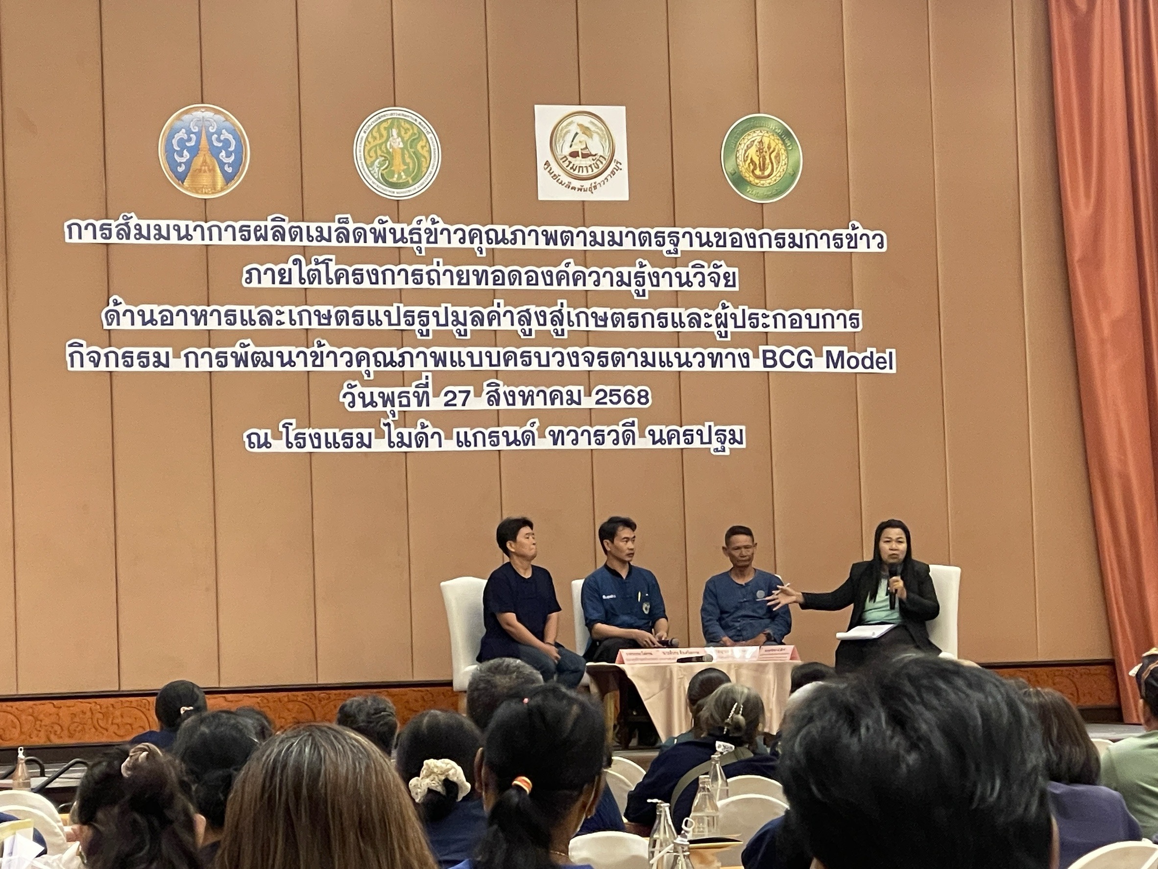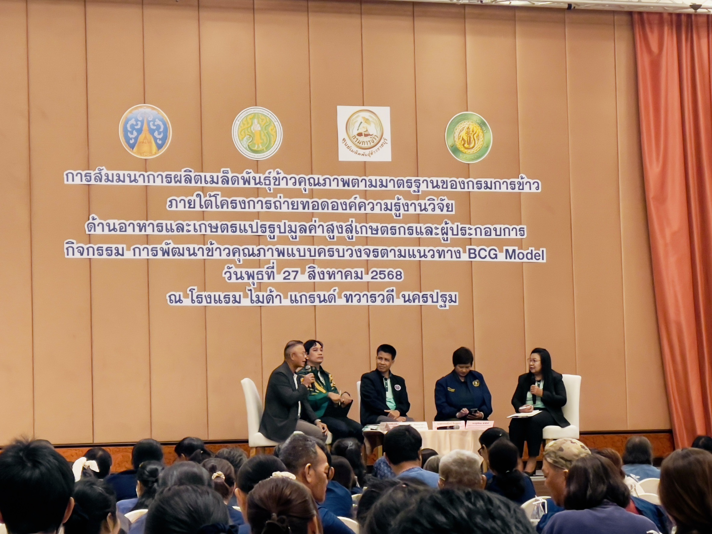 - ภายในงาน ยังเปิดเวทีแลกเปลี่ยนความคิดเห็น การนำเสนอผลการถอดบทเรียนจากแปลงต้นแบบ และการจัดแสดงตัวอย่างผลิตภัณฑ์เมล็ดพันธุ์คุณภาพ