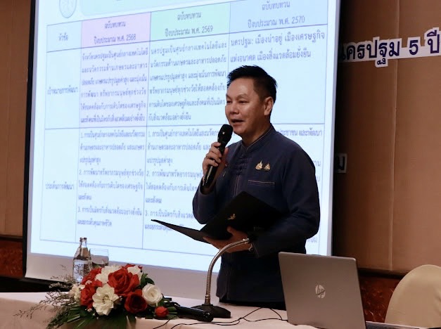 วันที่ 10 กันยายน 2568 สำนักงานเกษตรและสหกรณ์จังหวัดนครปฐม จัดโครงการสัมมนาเชิงปฏิบัติการ เรื่องการจัดทำแผนพัฒนาการเกษตรและสหกรณ์จังหวัดนครปฐม 5 ปี (พ.ศ. 2571 – 2575) โดยมีนายอรรถวุฒิ พึ่งเนียม รองผู้ว่าราชการจังหวัดนครปฐม เป็นประธานฯ นางสาวเอื้องพร นพคุณ เกษตรและสหกรณ์จังหวัดนครปฐม กล่าวรายงาน พร้อมด้วย นายสุพัฒ มูลพฤกษ์ ปฏิรูปที่ดินจังหวัดนครปฐม นางสาวนิรมล แก้วกัลยา ผู้อำนวยการกลุ่มยุทธศาสตร์และการปฏิรูปที่ดิน หัวหน้าส่วนราชการ ข้าราชการ และเจ้าหน้าที่ เข้าร่วมสัมมนาฯ ซึ่งโครงการดังกล่าวมีวัตถุประสงค์เพื่อเสริมสร้างทักษะในการจัดทำแผนพัฒนาการเกษตรและสหกรณ์ในระดับจังหวัดให้แก่บุคลากรให้มีเข้าใจในทิศทางการพัฒนาอย่างเป็นระบบและมีประสิทธิภาพ และให้เกิดการบูรณาการแผนงาน/โครงการของหน่วยงานในสังกัดกระทรวงฯและภาคส่วนที่เกี่ยวข้อง ในการเพิ่มศักยภาพและแก้ไขปัญหาความต้องการของเกษตรกรในพื้นที่ ณ โรงแรมไมด้า แกรนด์ ทวารวดี นครปฐม