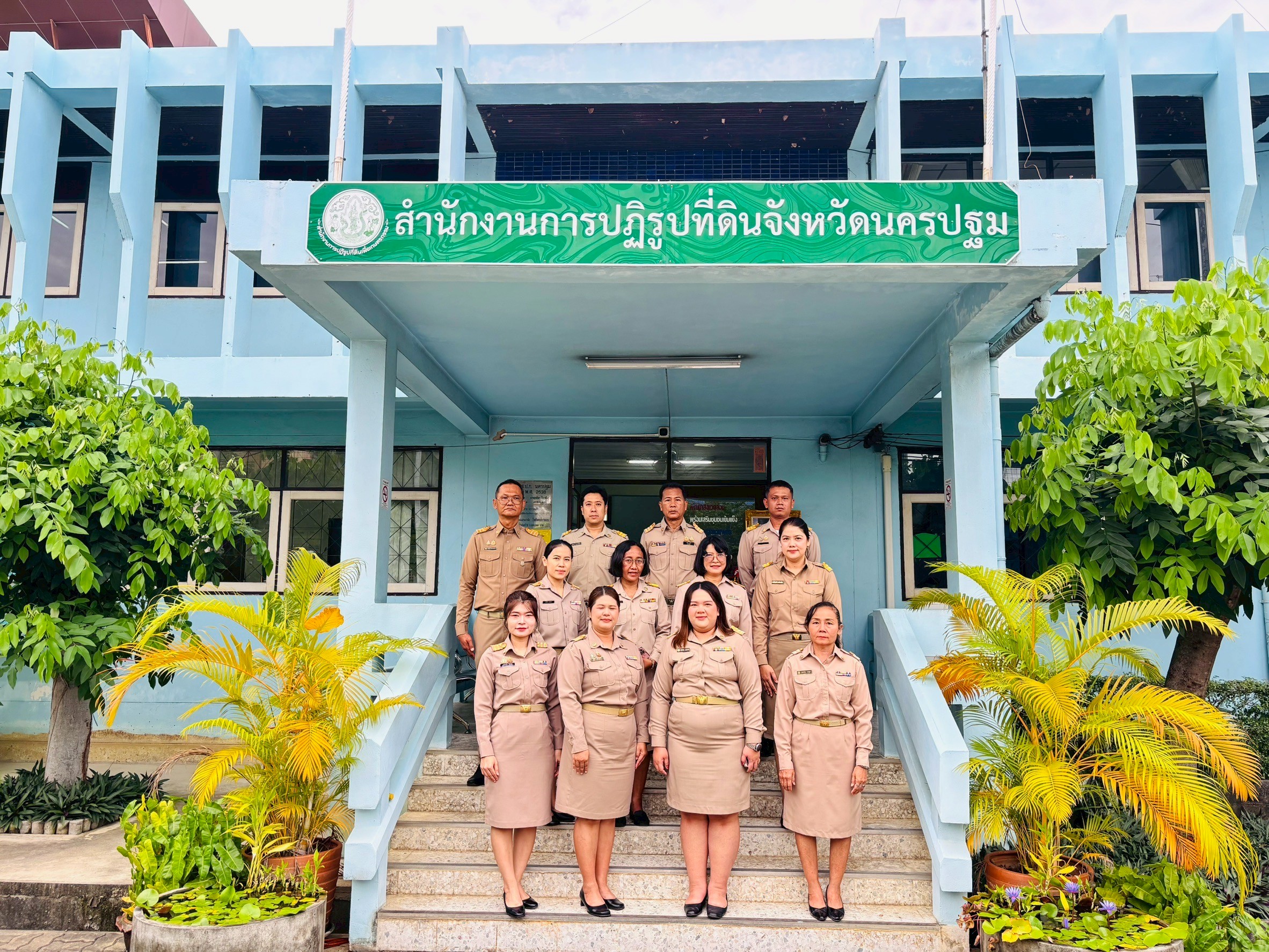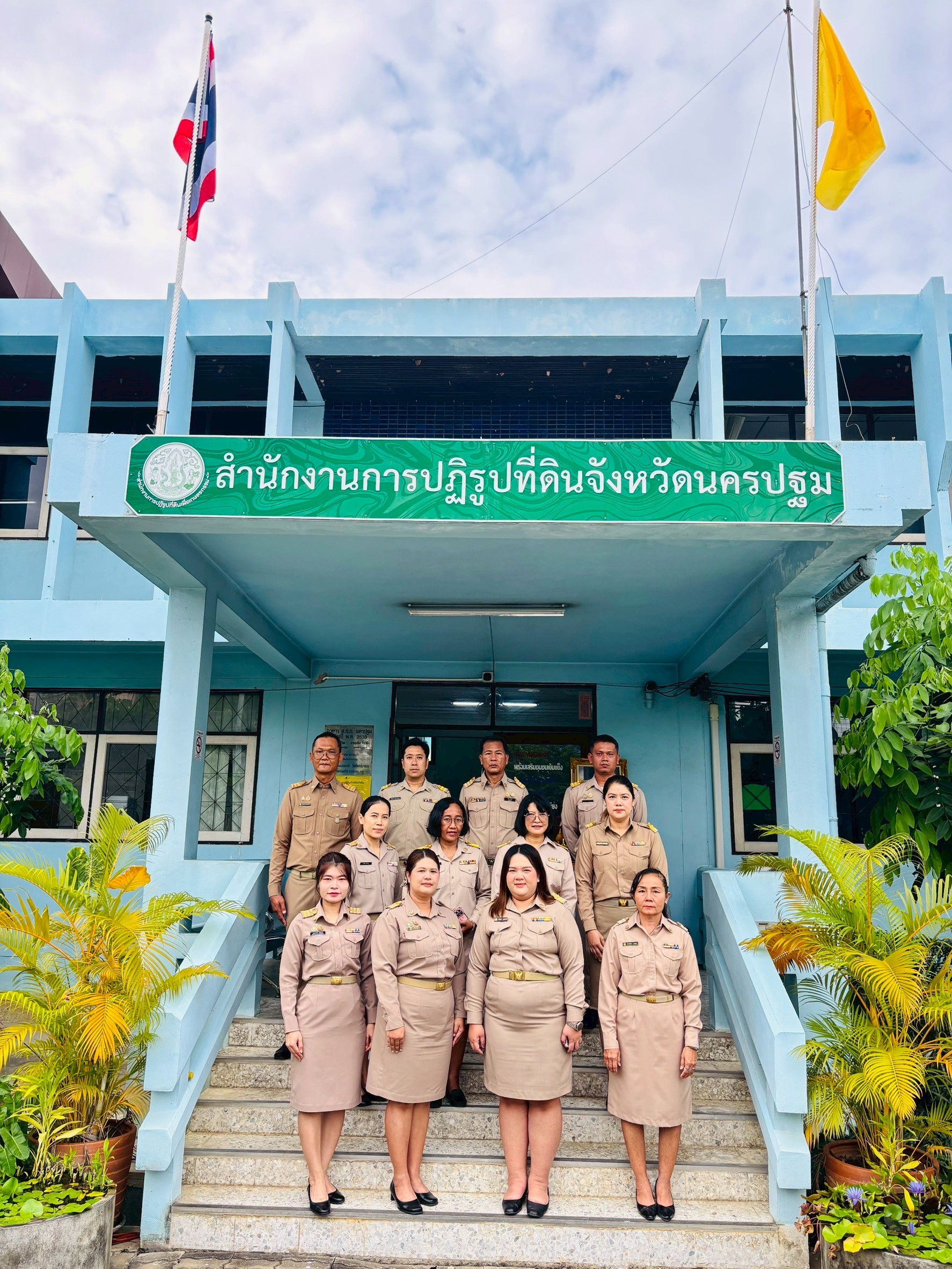 สำนักงานการปฏิรูปที่ดินจังหวัดนครปฐม (ส.ป.ก.นครปฐม) จัดกิจกรรมเคารพธงชาติและร้องเพลงชาติไทย เนื่องในวันพระราชทานธงชาติไทย (Thai National Flag Day) วันที่ 28 กันยายน ประจำปี 2568 ณ บริเวณหน้าเสาธง สำนักงานการปฏิรูปที่ดินจังหวัดนครปฐม (ส.ป.ก.นครปฐม)